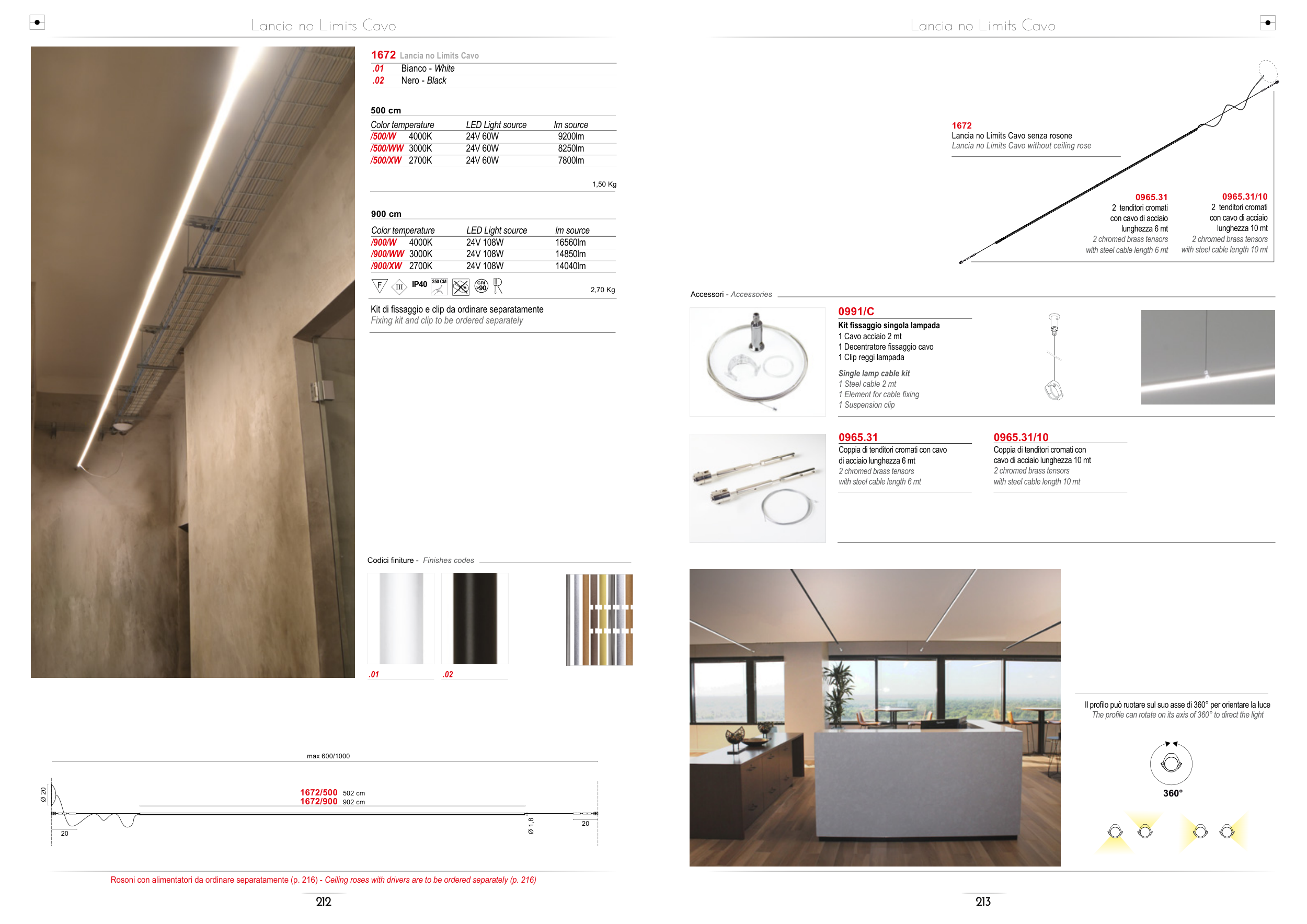 Rosoni con alimentatori da ordinare separatamente (p. 216) - Ceiling roses with drivers are to be ordered separately (p. 216)