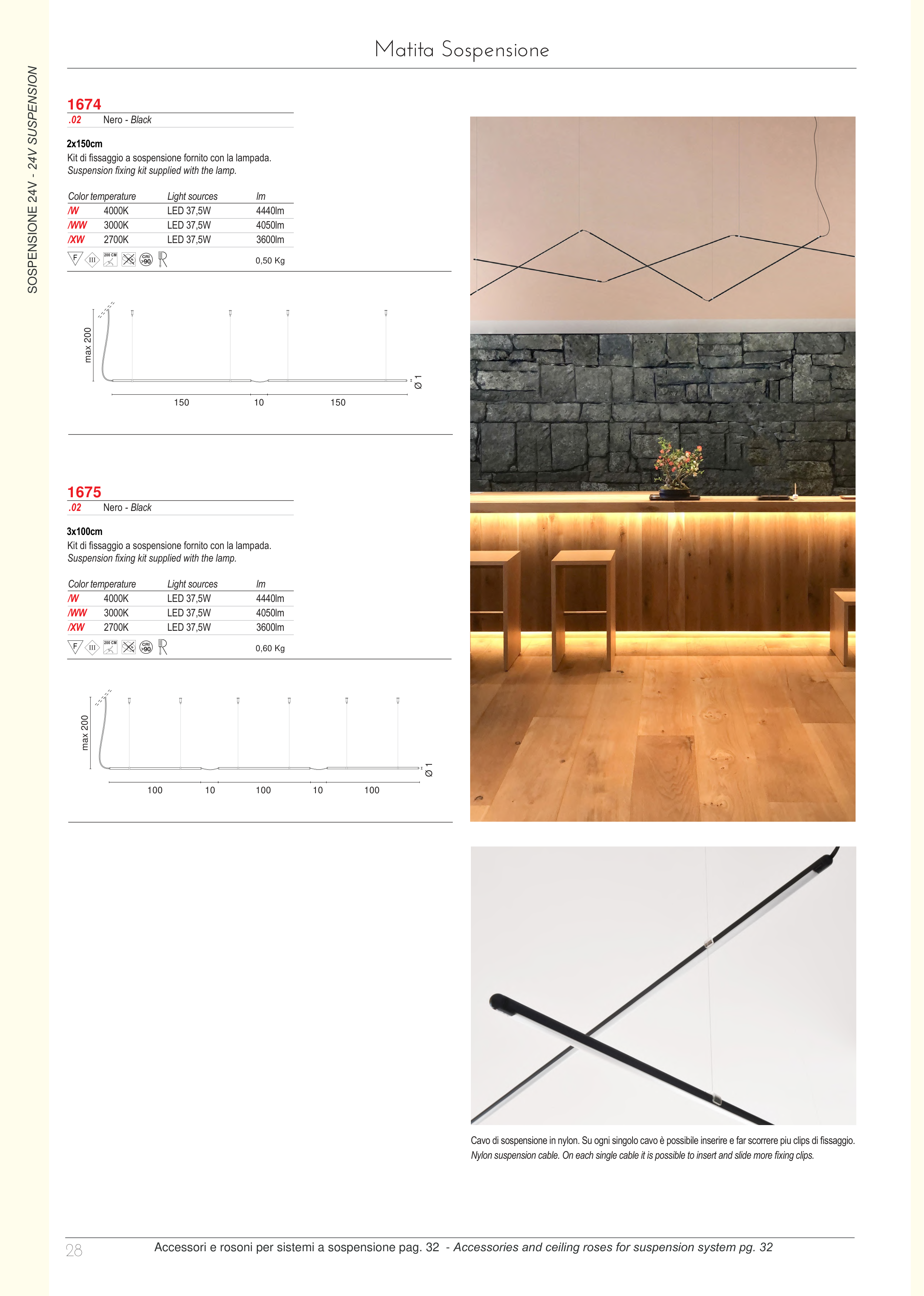 Suspension fixing kit supplied with the lamp.