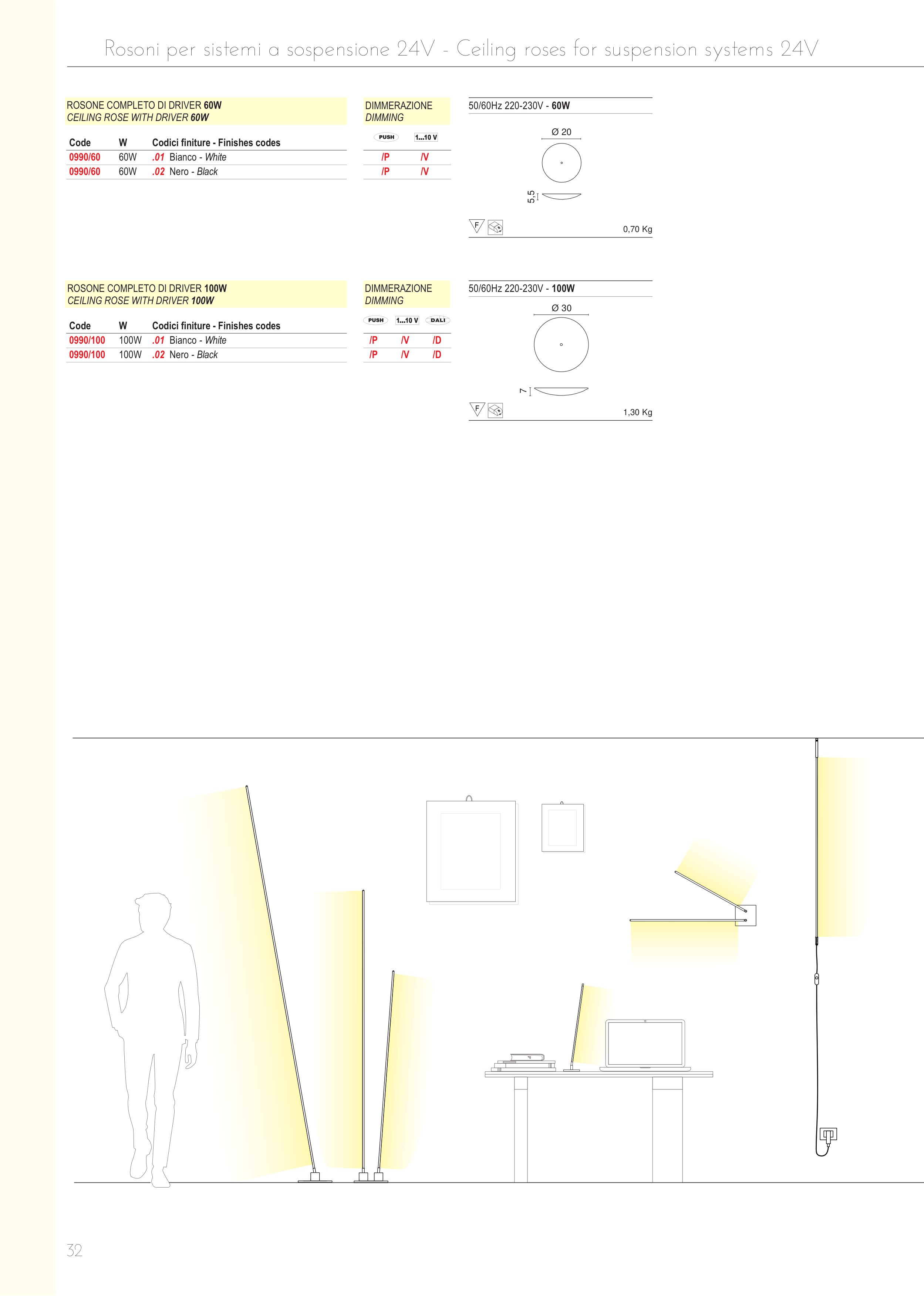 Rosoni per sistemi a sospensione 24V - Ceiling roses for suspension systems 24V