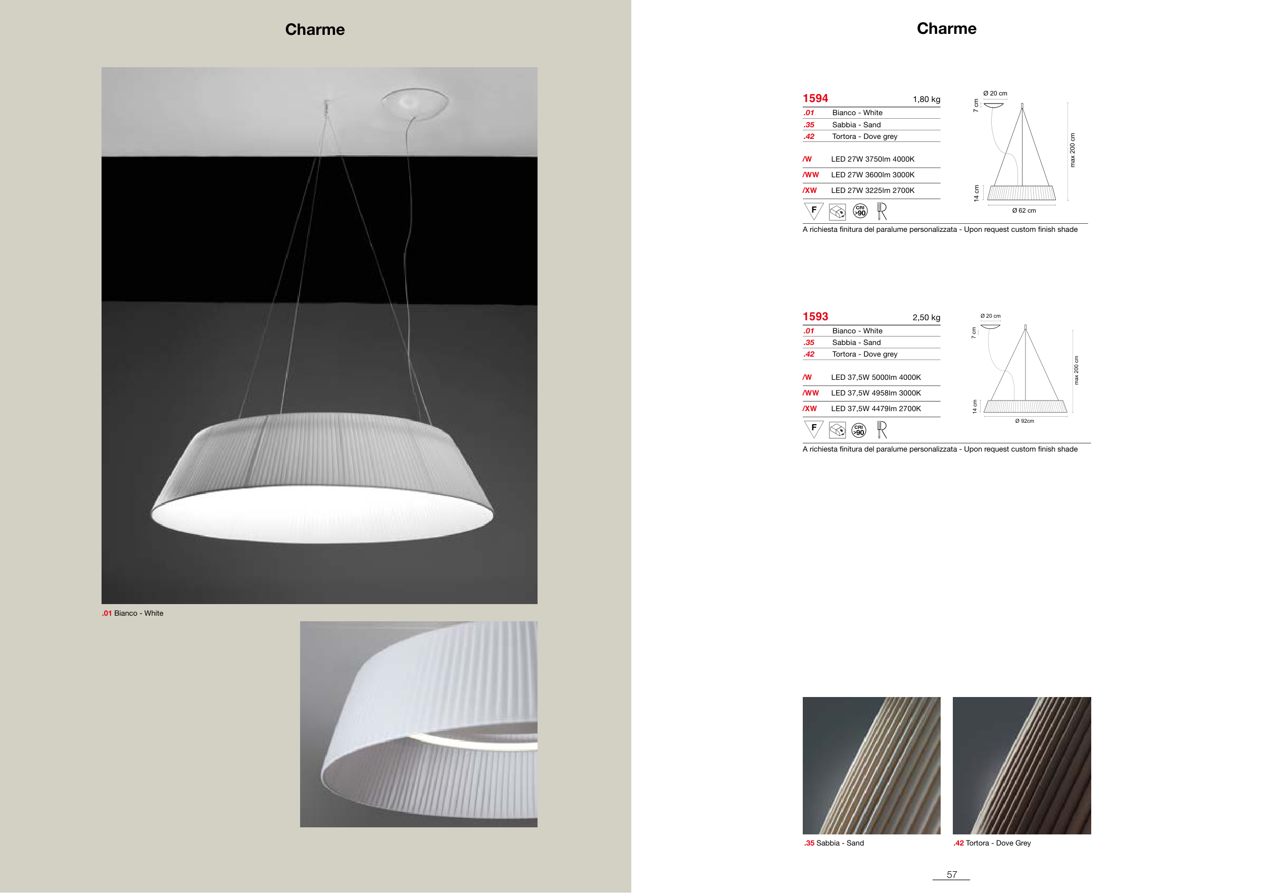 A richiesta finitura del paralume personalizzata - Upon request custom finish shade