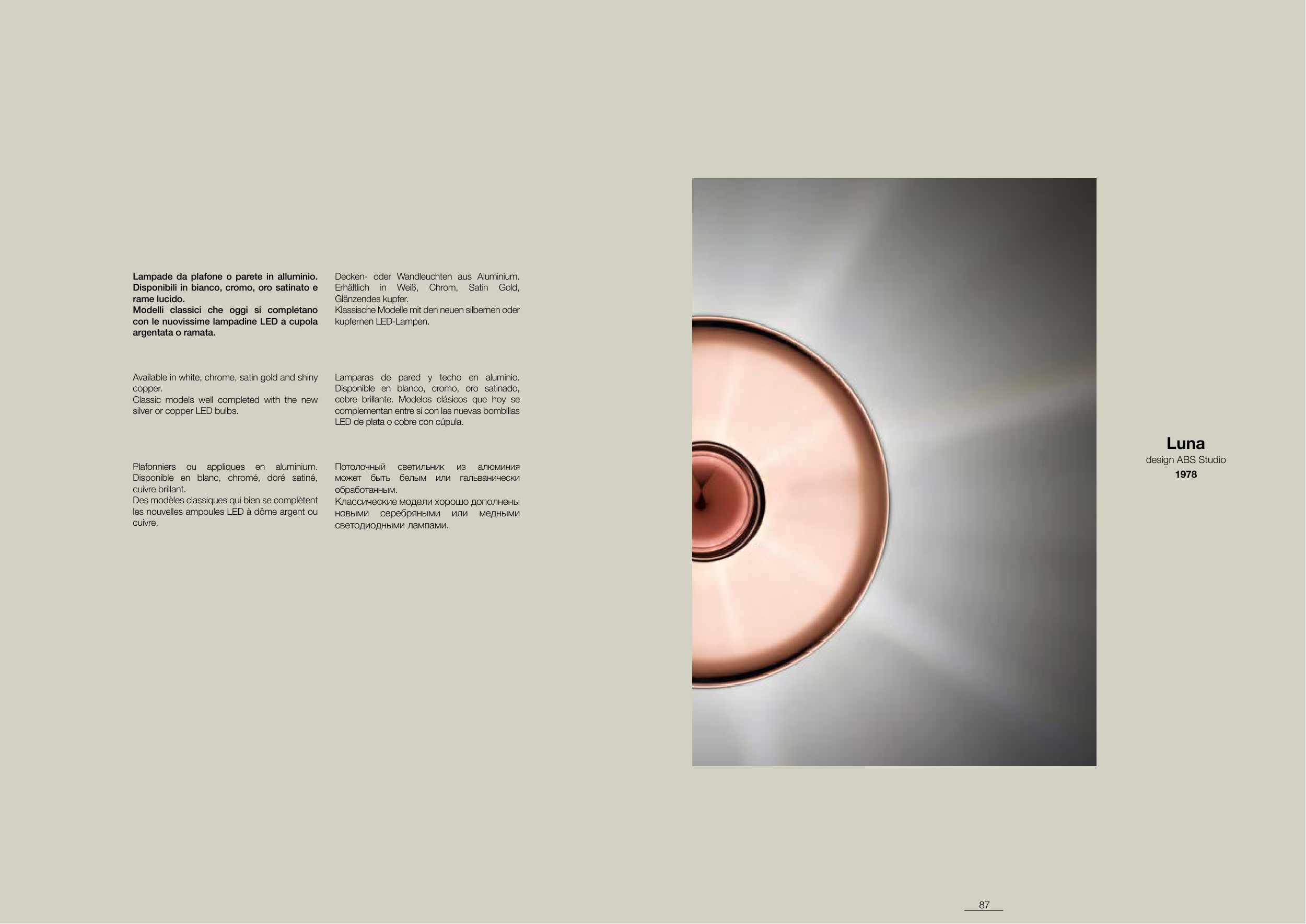 Disponible en blanco, cromo, oro satinado,