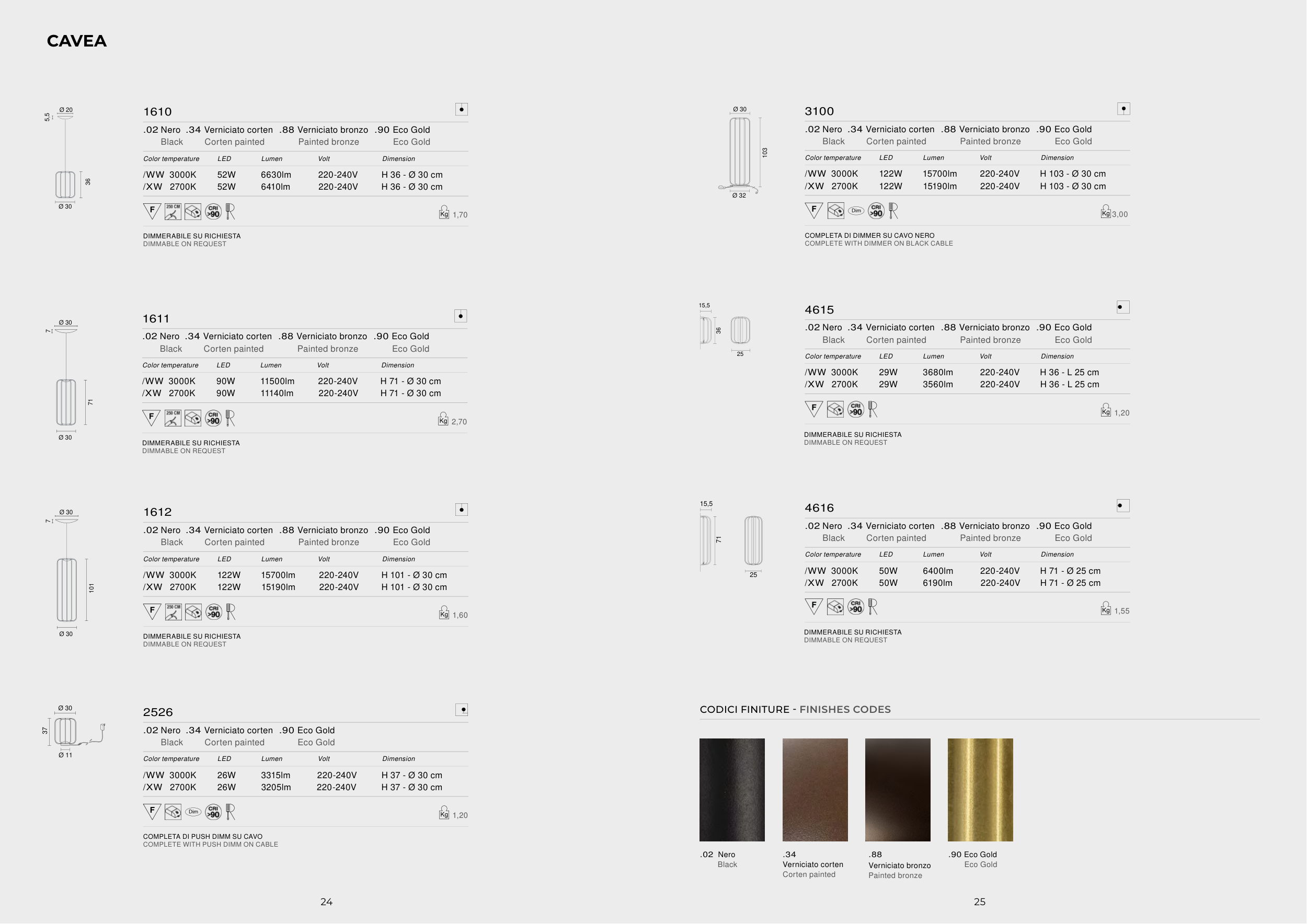 .02 Nero .34 Verniciato corten .88 Verniciato bronzo .90 Eco Gold