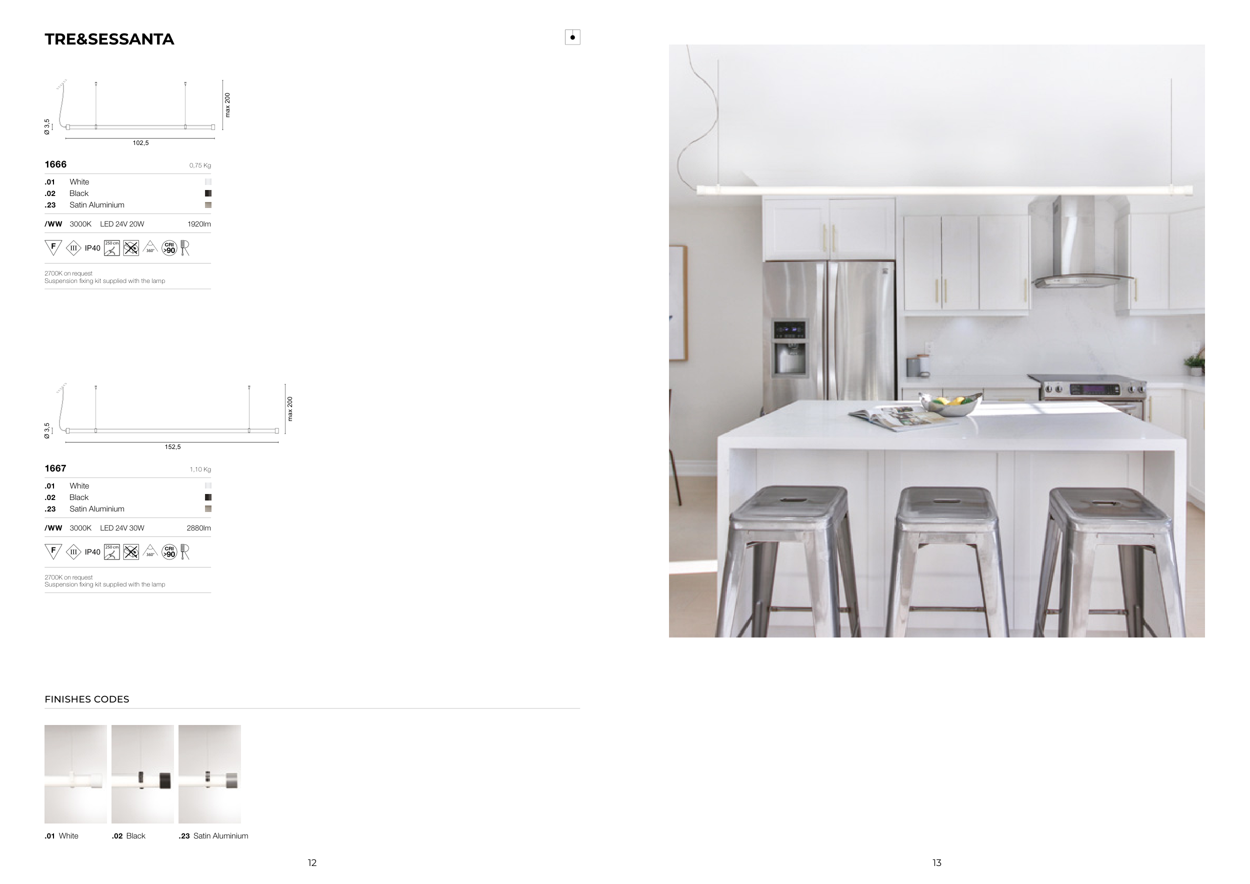 Suspension fixing kit supplied with the lamp