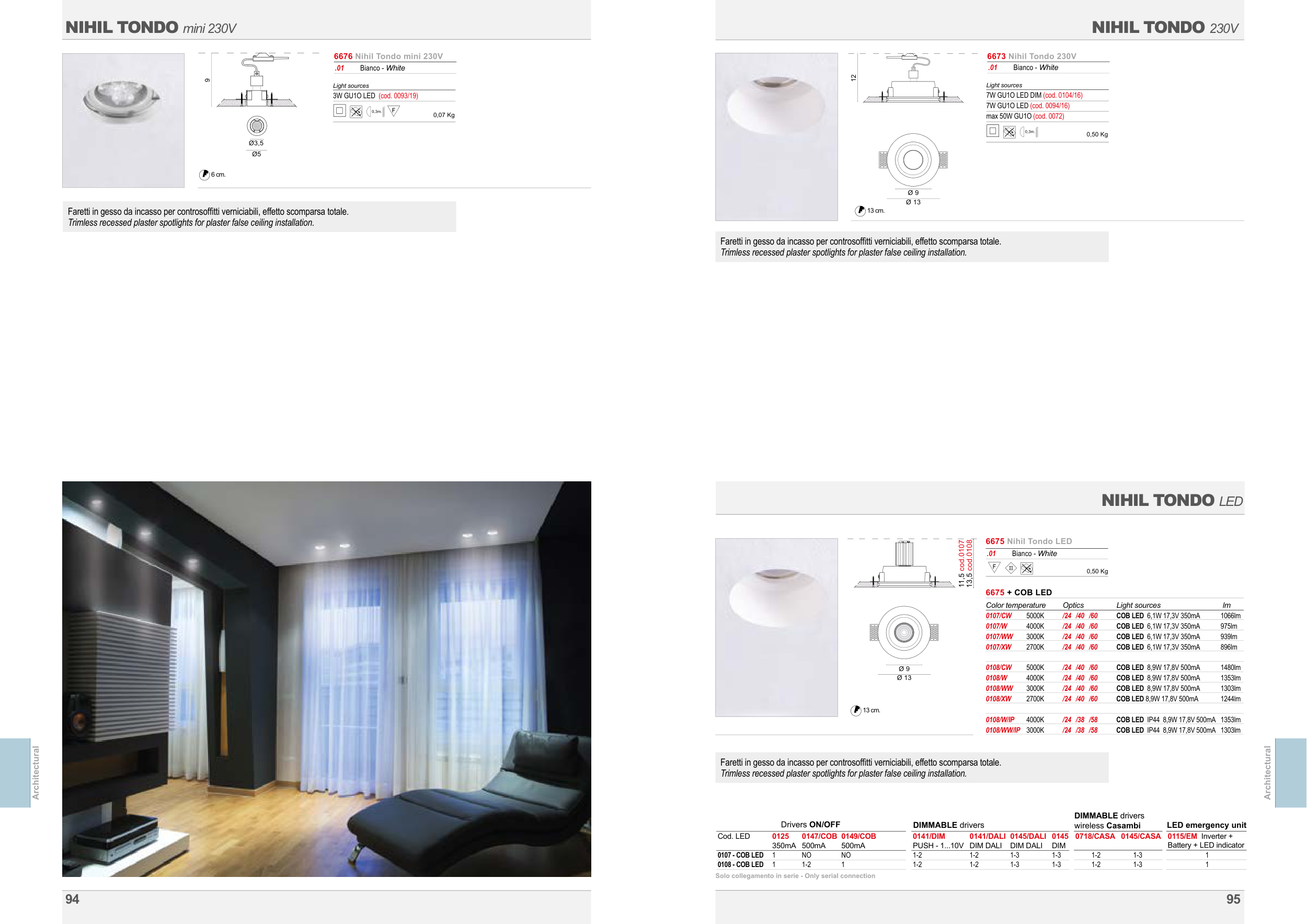 Trimless recessed plaster spotlights for plaster false ceiling installation.