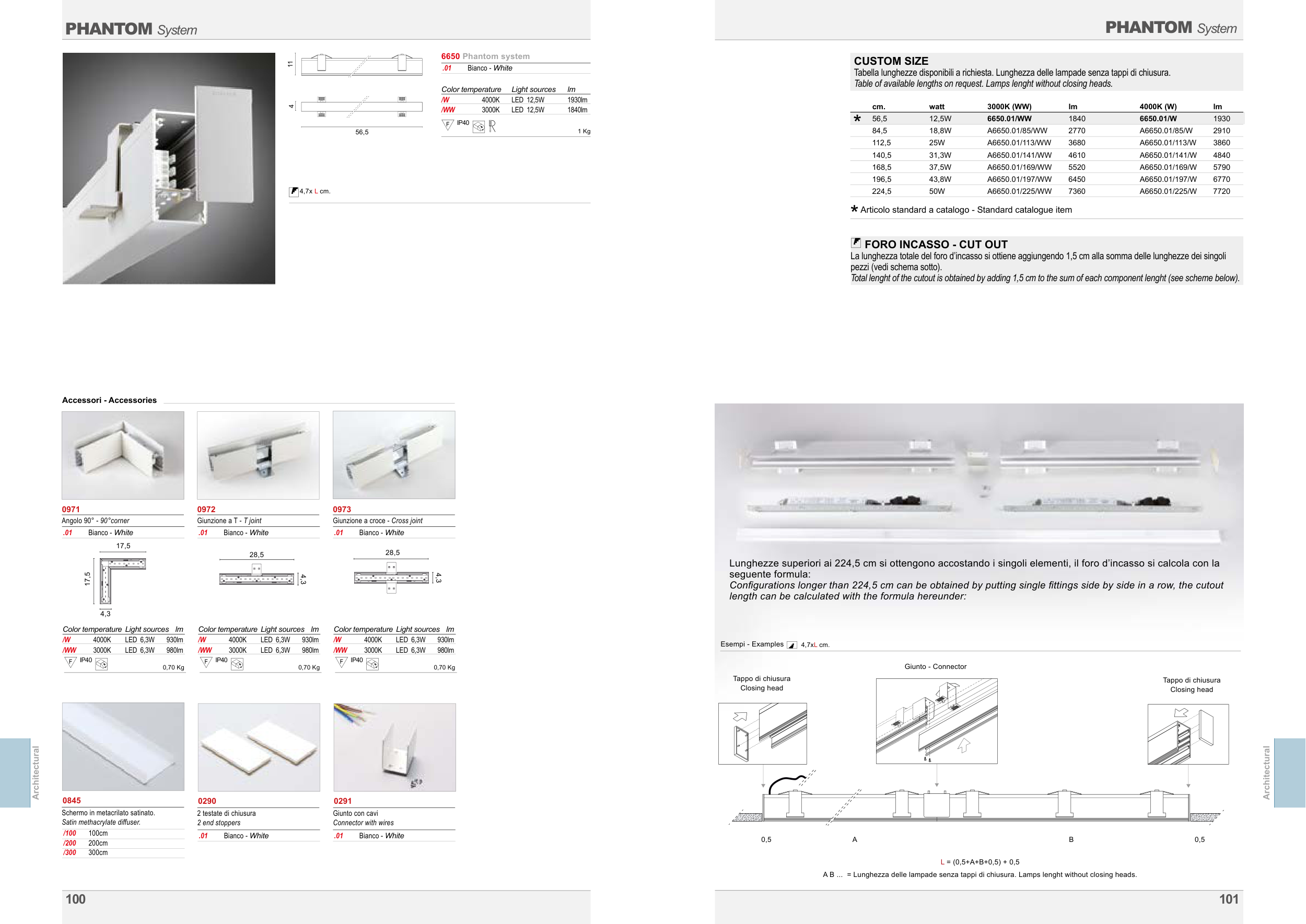 Table of available lengths on request. Lamps lenght without closing heads.
