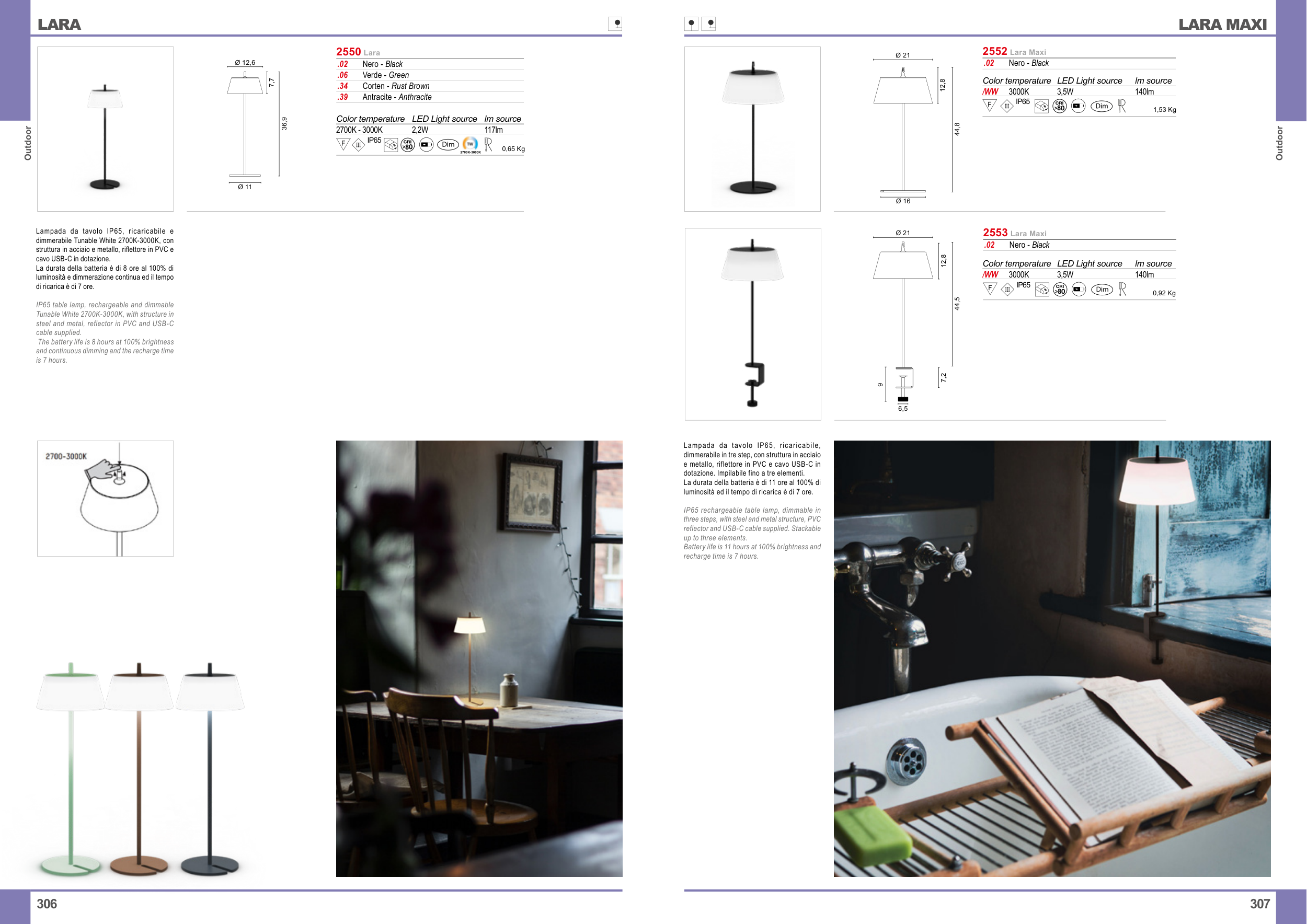 IP65 table lamp, rechargeable and dimmable