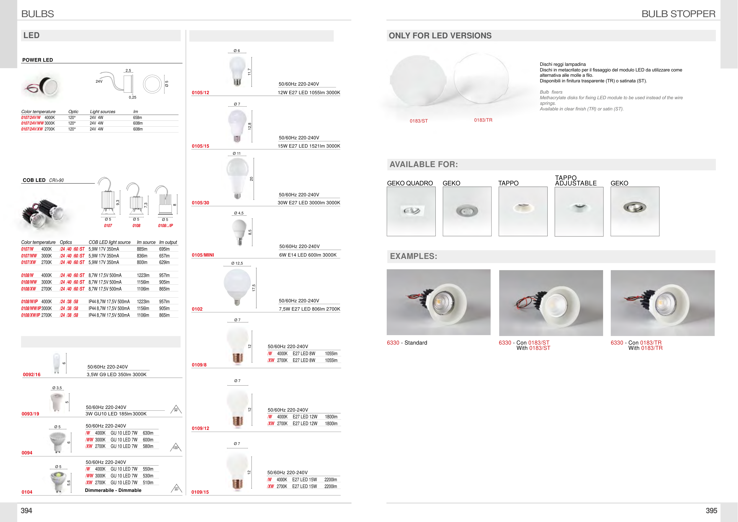 Disponibili in finitura trasparente (TR) o satinata (ST).