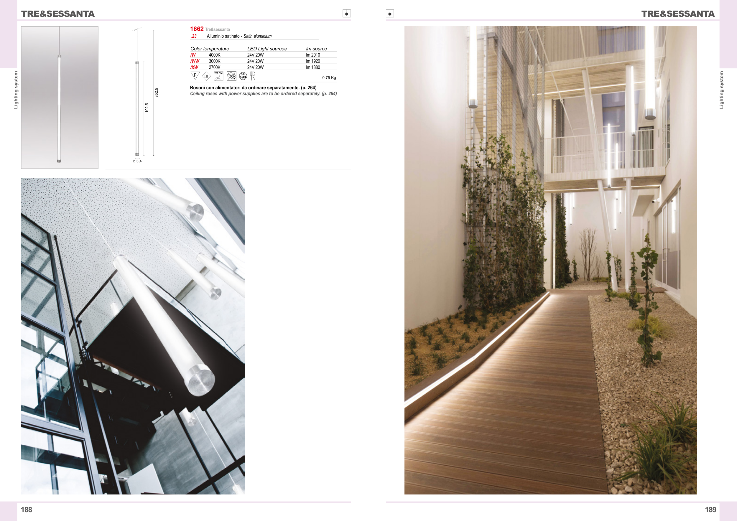 Ceiling roses with power supplies are to be ordered separately. (p. 264)