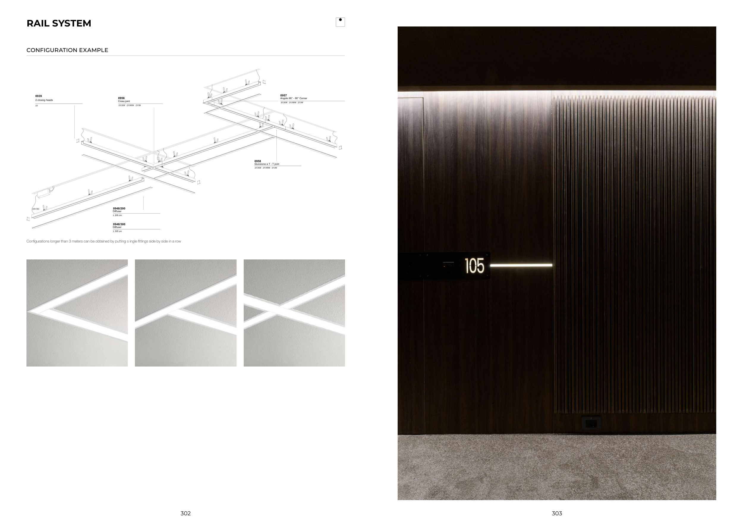 Configurations longer than 3 meters can be obtained by putting s ingle fittings side by side in a row