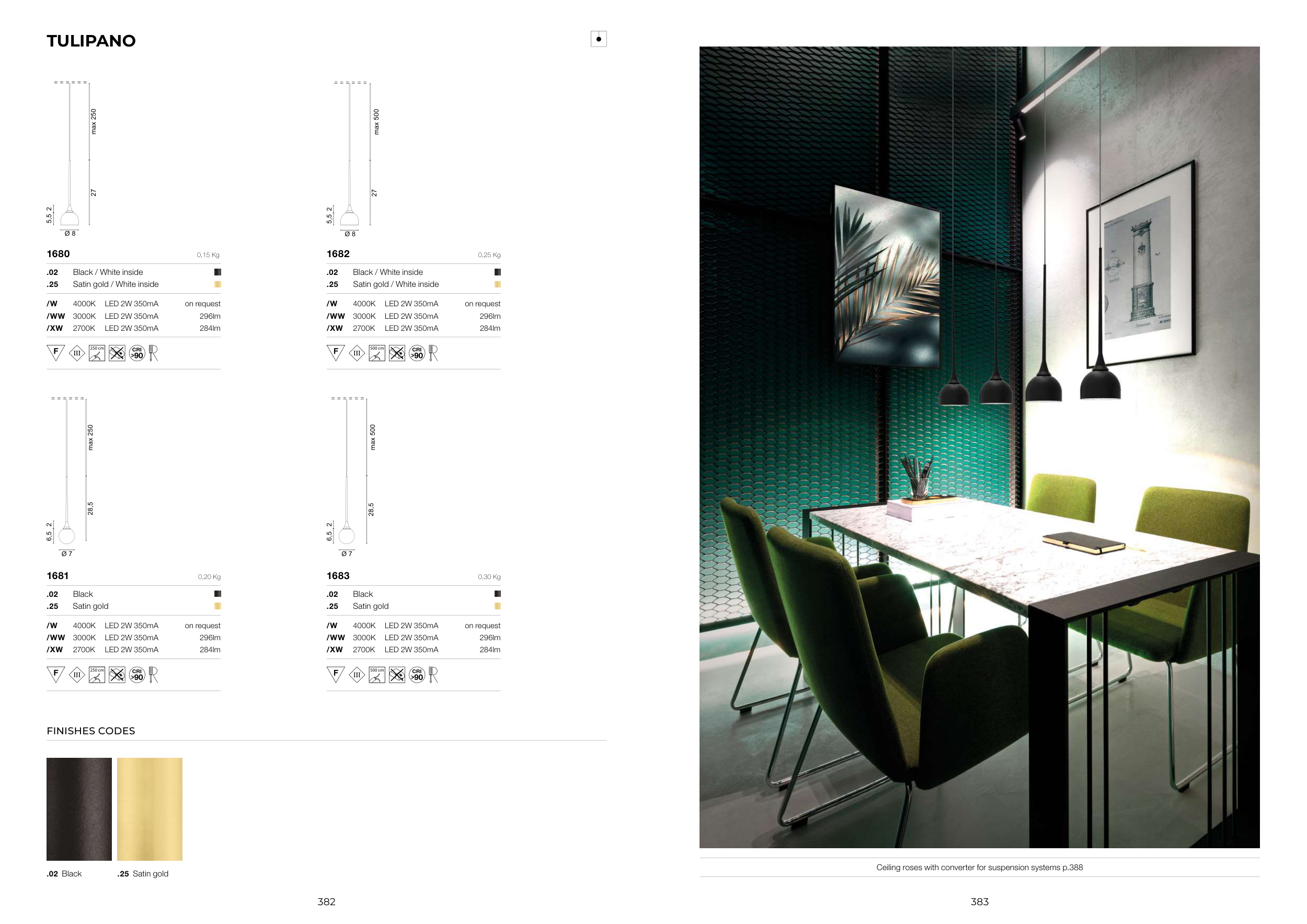 Ceiling roses with converter for suspension systems p.388