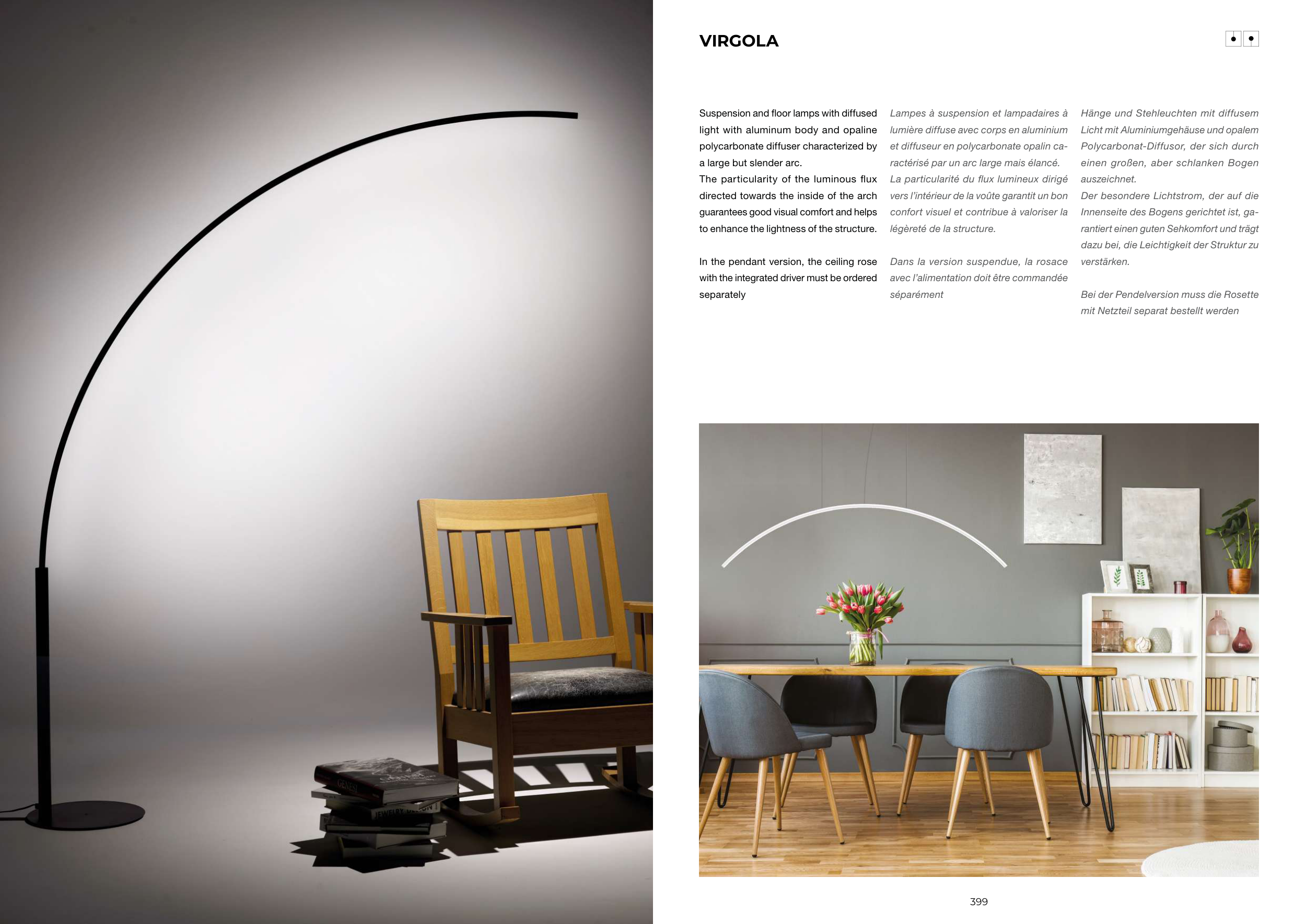 Suspension and floor lamps with diffused