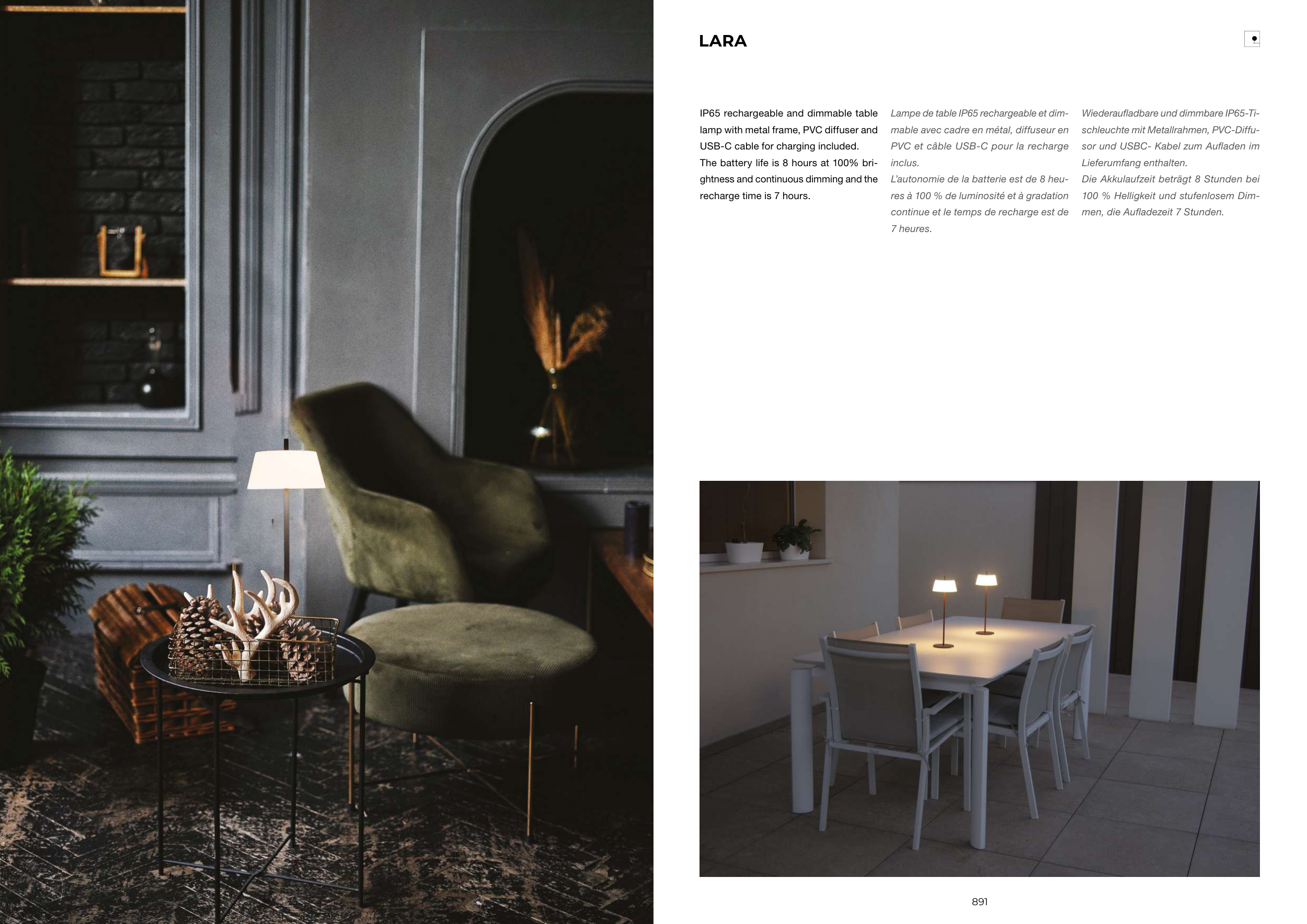 Lampe de table IP65 rechargeable et dim-