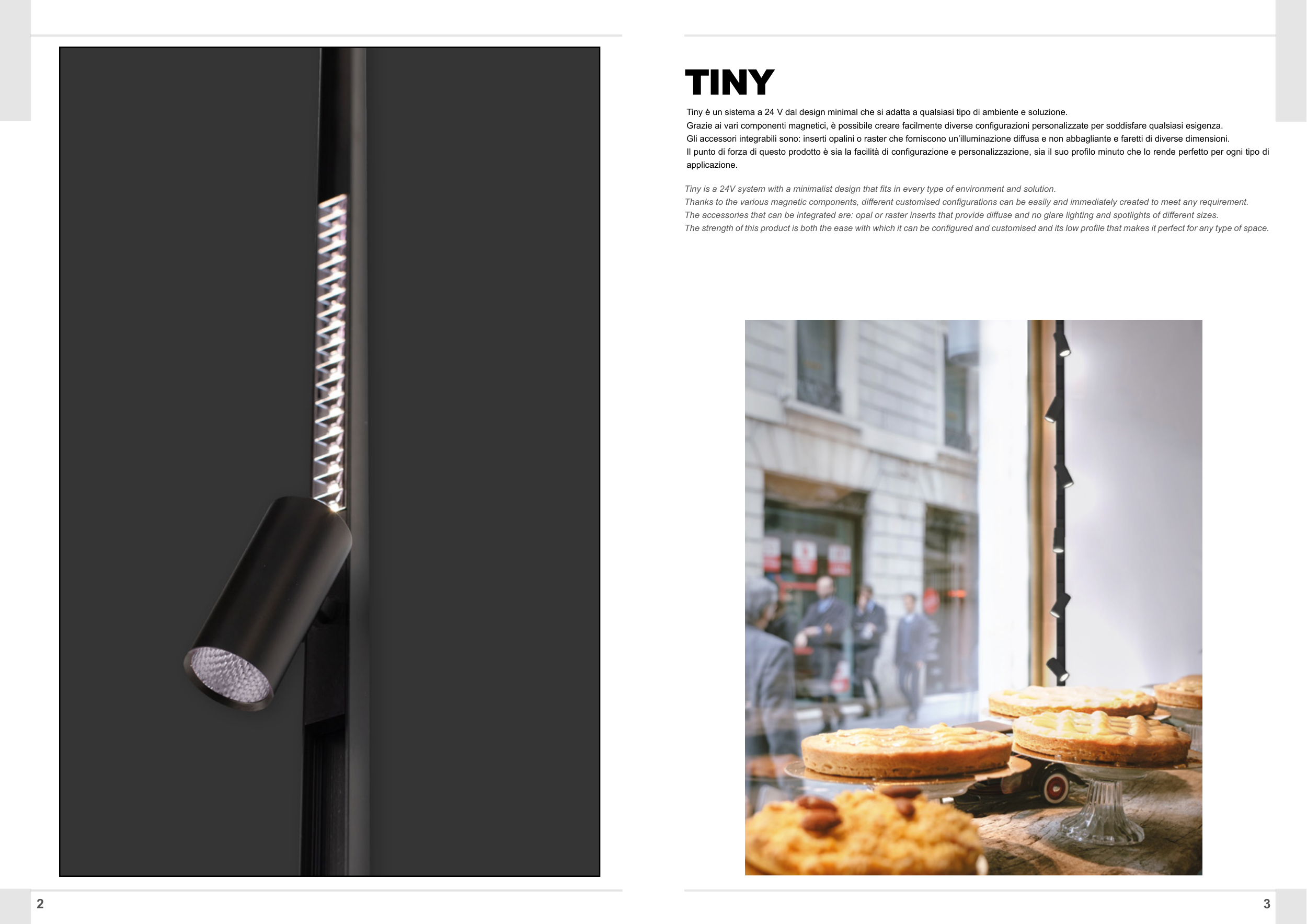 Tiny è un sistema a 24 V dal design minimal che si adatta a qualsiasi tipo di ambiente e soluzione.