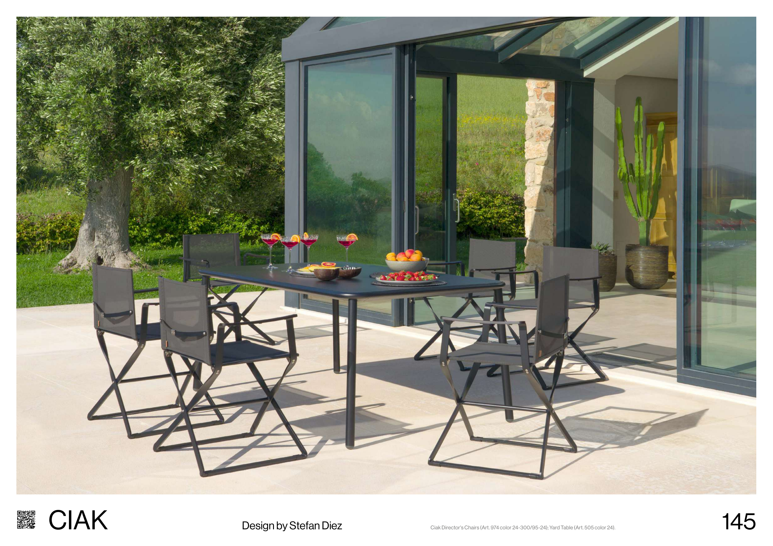 Ciak Director's Chairs (Art. 974 color 24-300/95-24); Yard Table (Art. 505 color 24).