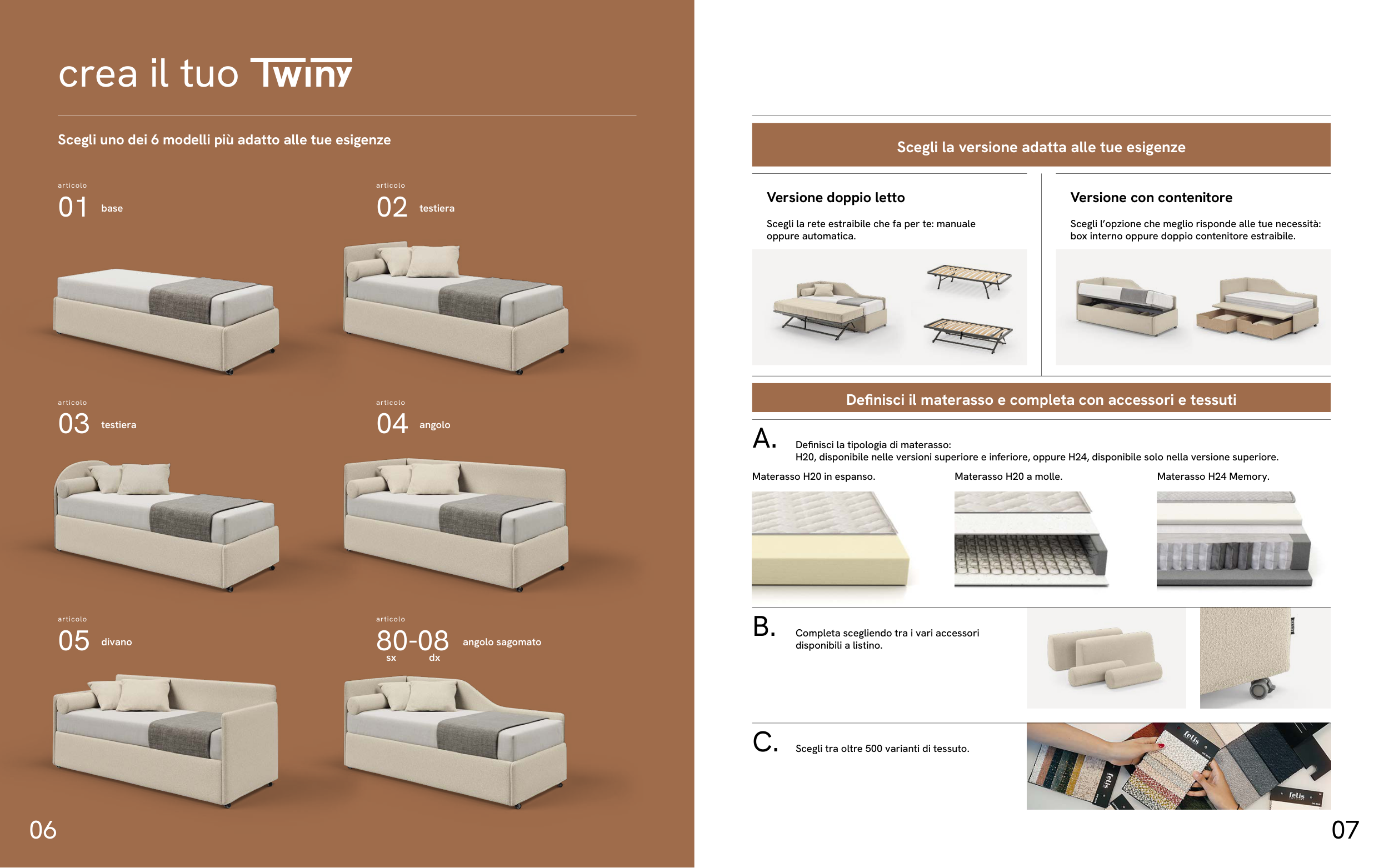 Definisci il materasso e completa con accessori e tessuti