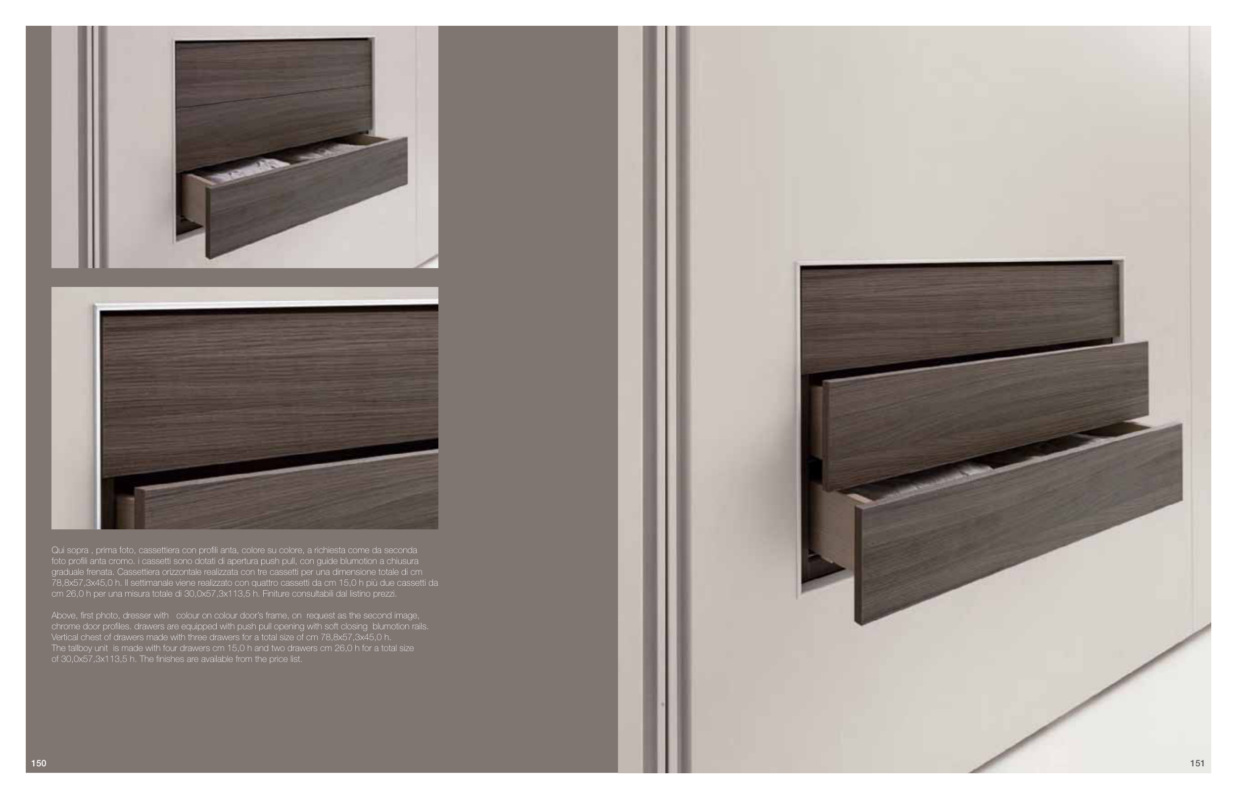chrome door profiles. drawers are equipped with push pull opening with soft closing blumotion rails.