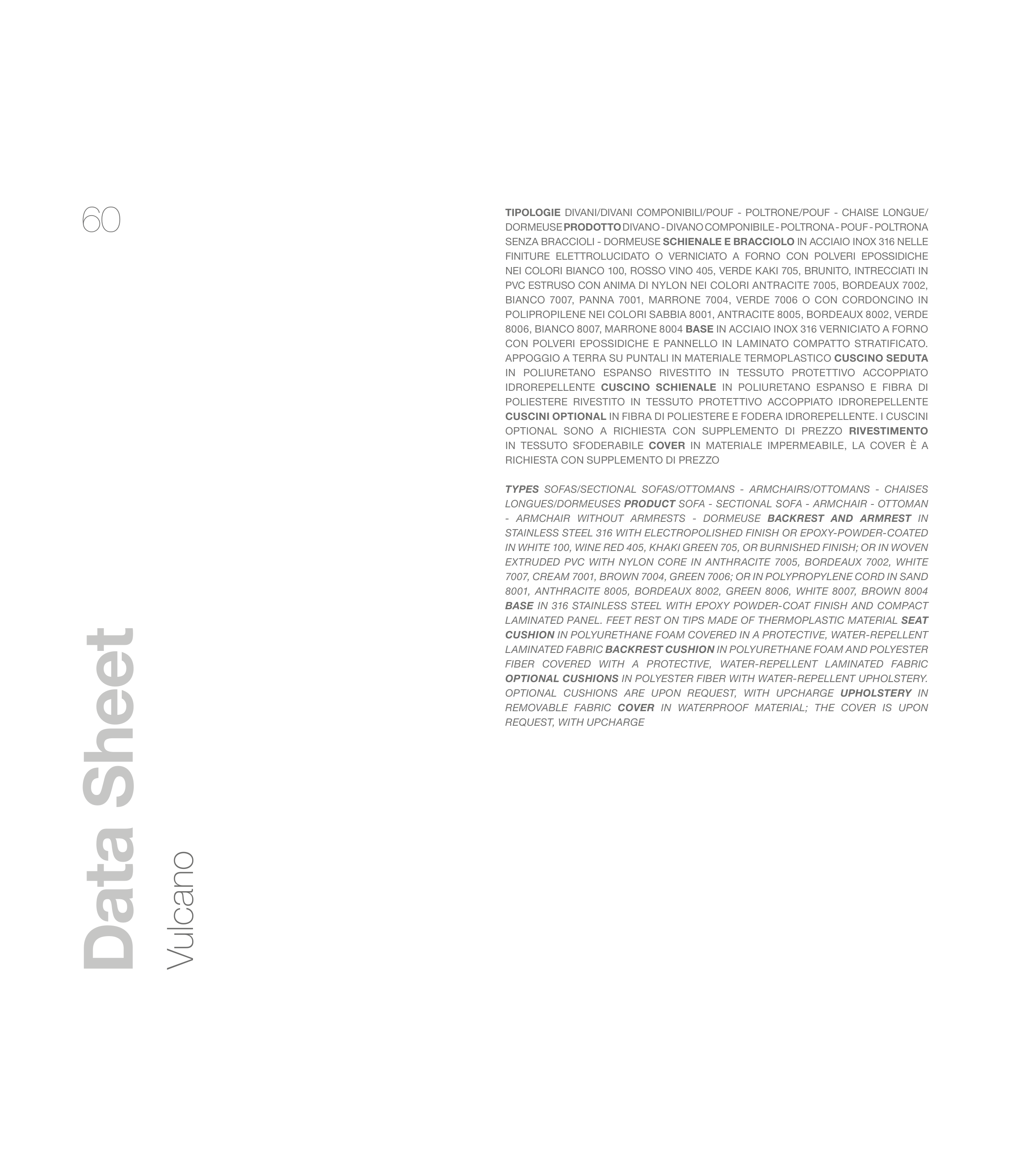 CUSCINI OPTIONAL IN FIBRA DI POLIESTERE E FODERA IDROREPELLENTE. I CUSCINI