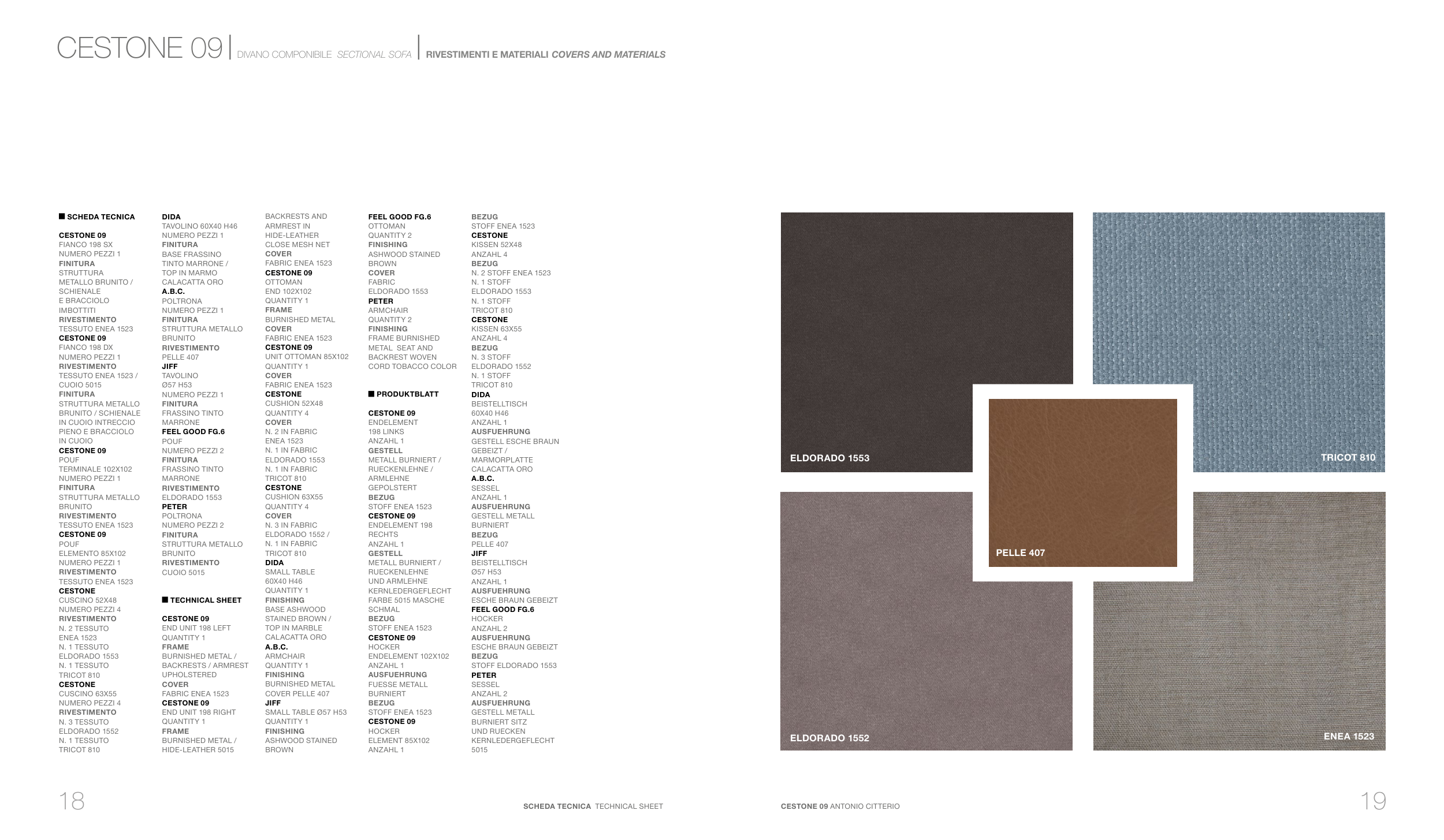 CESTONE 09 | DIVANO COMPONIBILE SECTIONAL SOFA | RIVESTIMENTI E MATERIALI COVERS AND MATERIALS