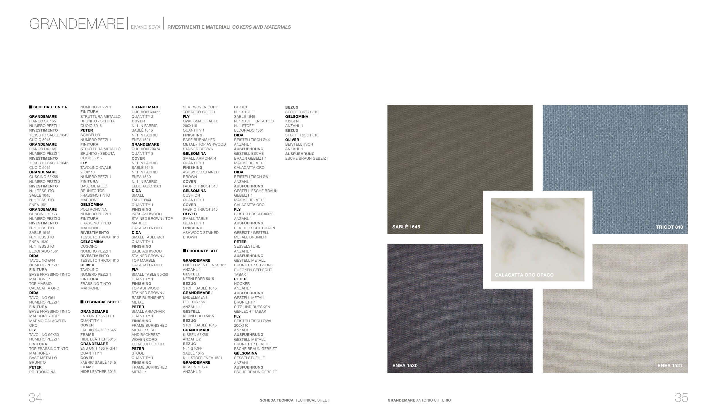 GRANDEMARE | DIVANO SOFA | RIVESTIMENTI E MATERIALI COVERS AND MATERIALS