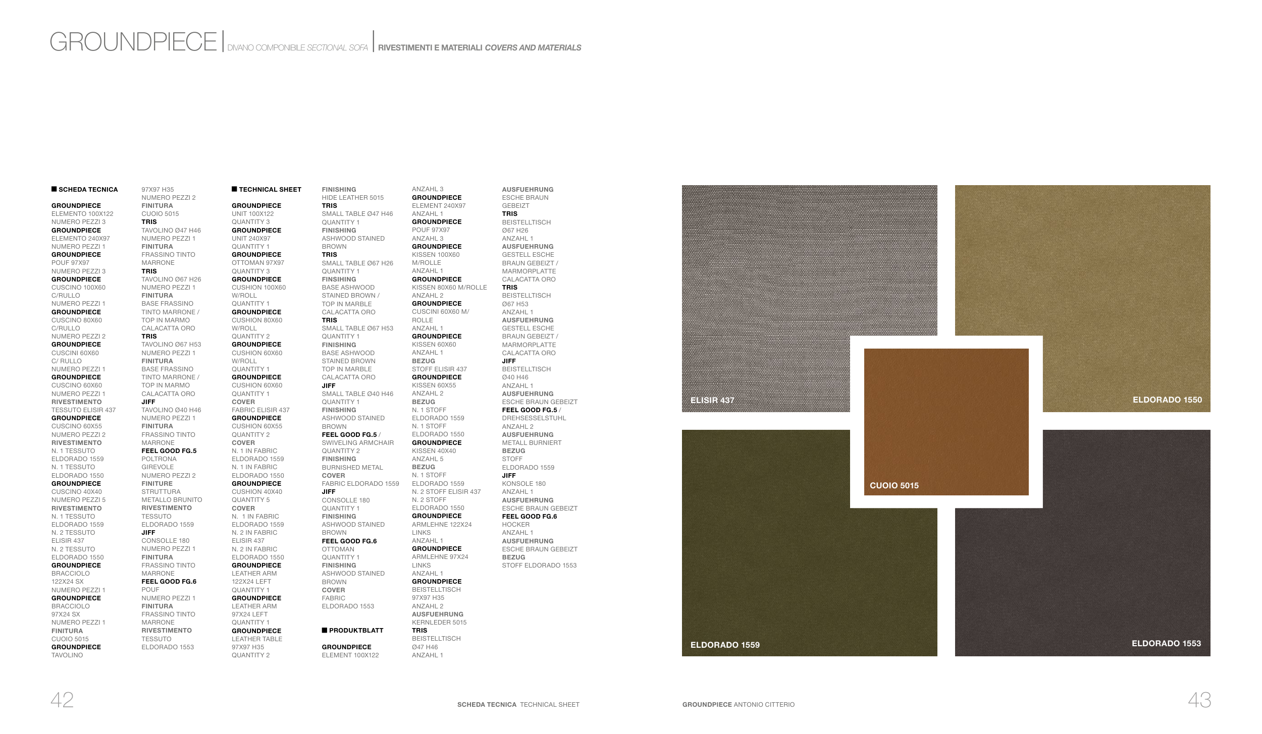 GROUNDPIECE | DIVANO COMPONIBILE SECTIONAL SOFA | RIVESTIMENTI E MATERIALI COVERS AND MATERIALS