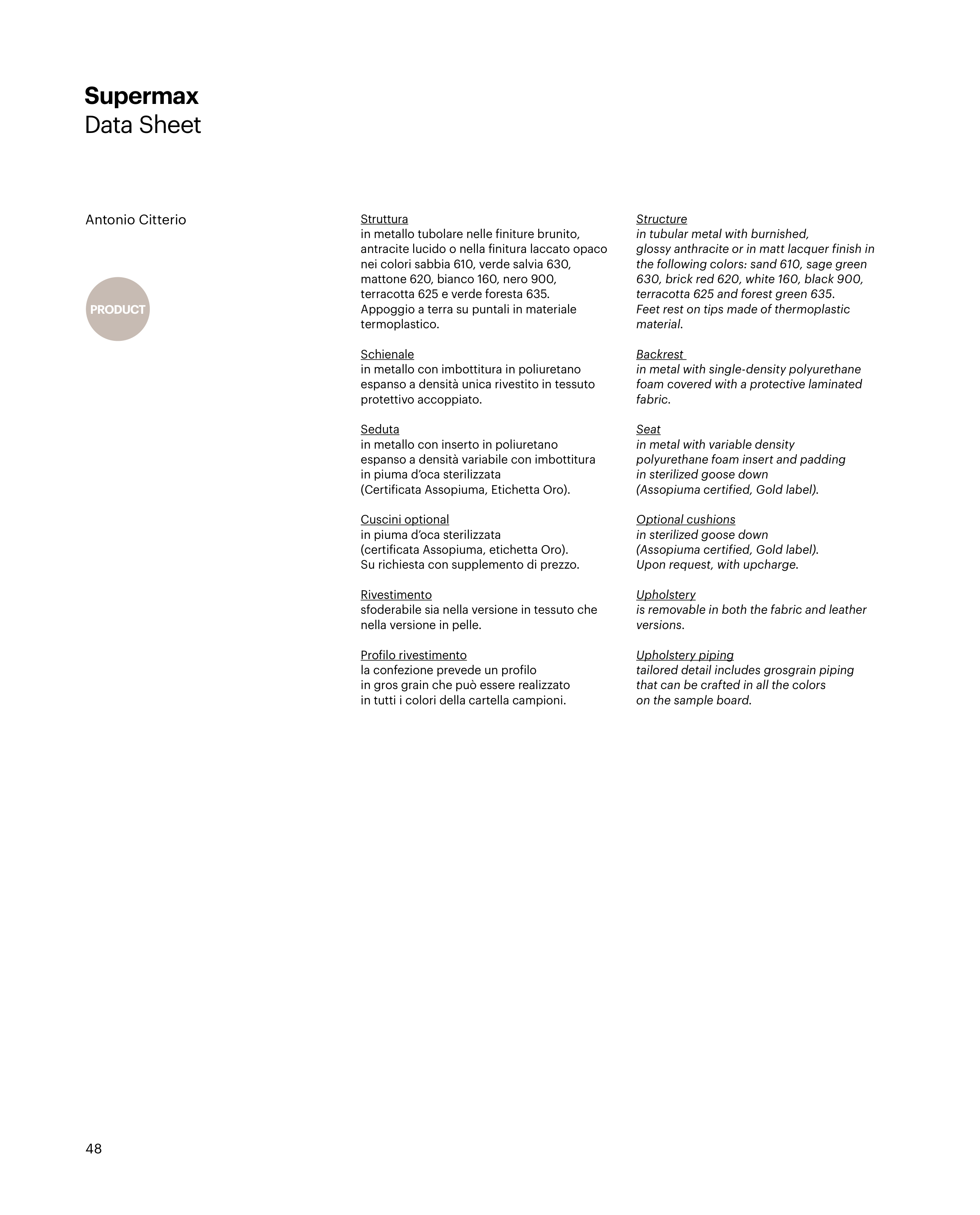 (certificata Assopiuma, etichetta Oro).