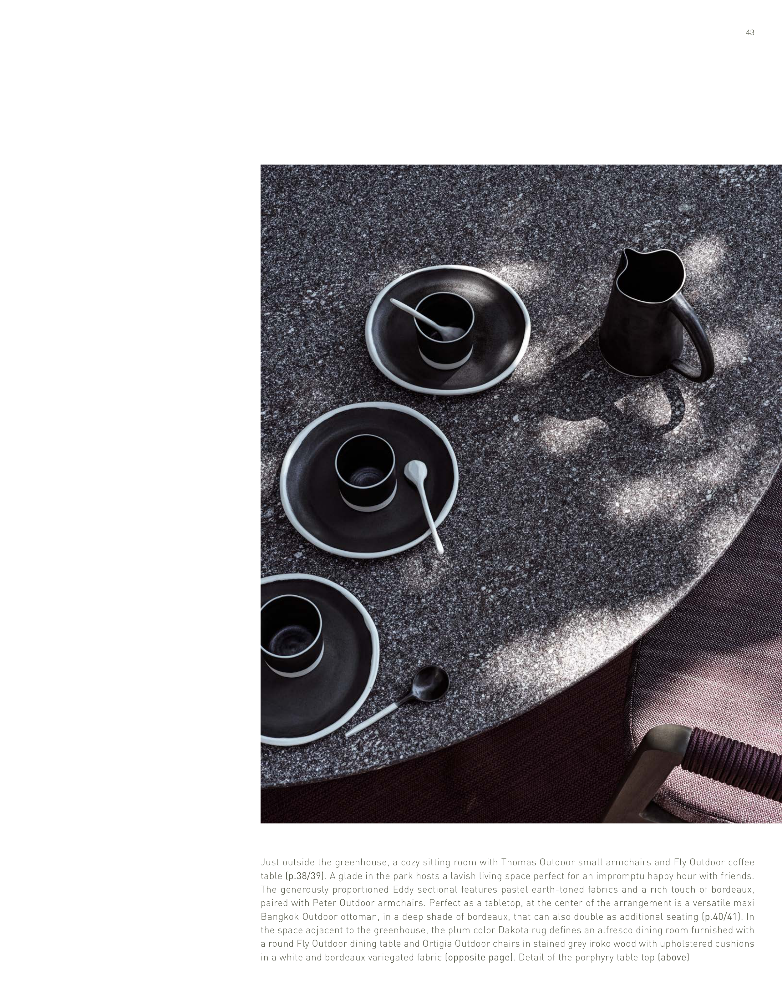 table (p.38/39). A glade in the park hosts a lavish living space perfect for an impromptu happy hour with friends.