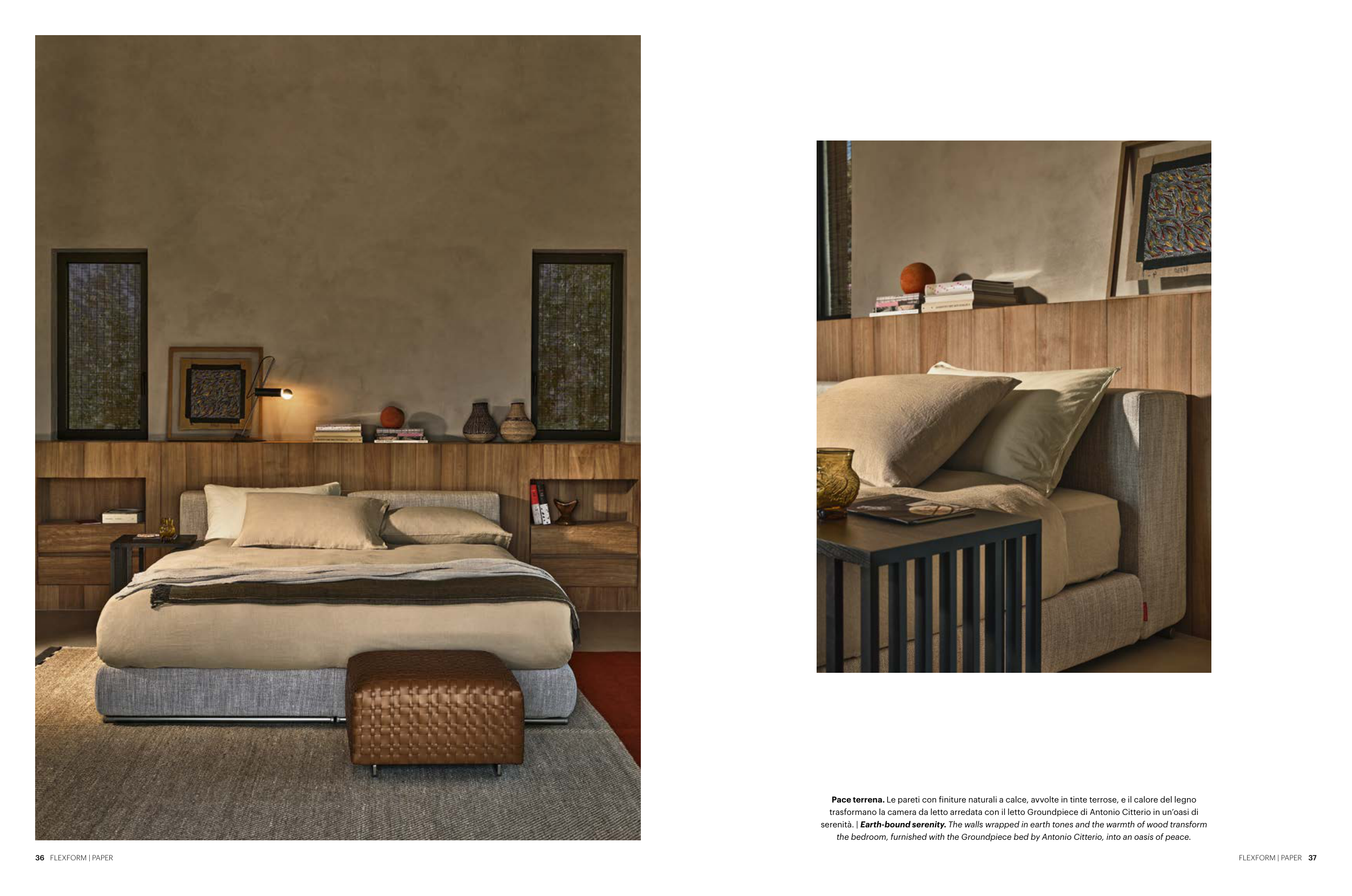 trasformano la camera da letto arredata con il letto Groundpiece di Antonio Citterio in un’oasi di