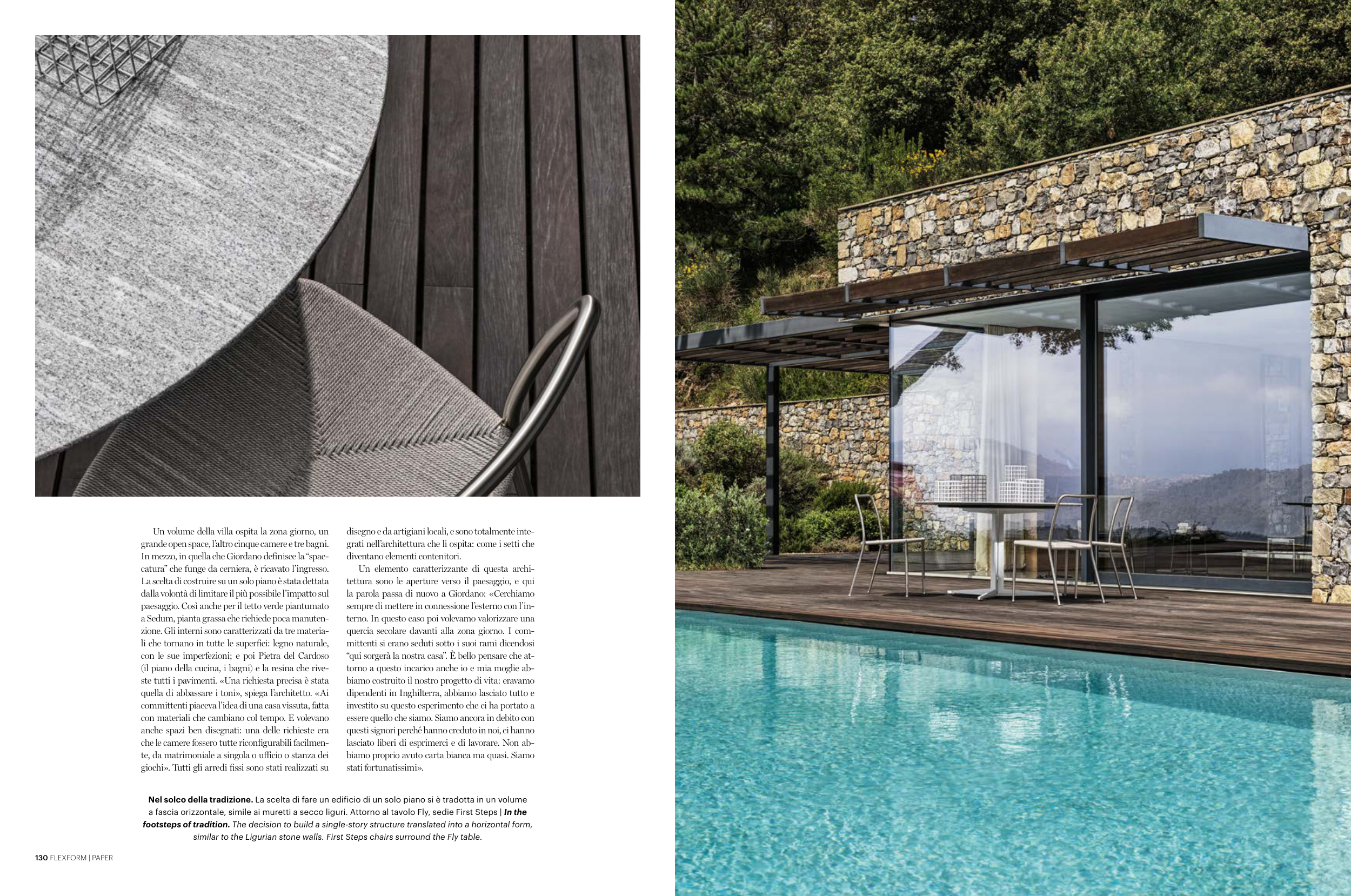 a fascia orizzontale, simile ai muretti a secco liguri. Attorno al tavolo Fly, sedie First Steps | In the