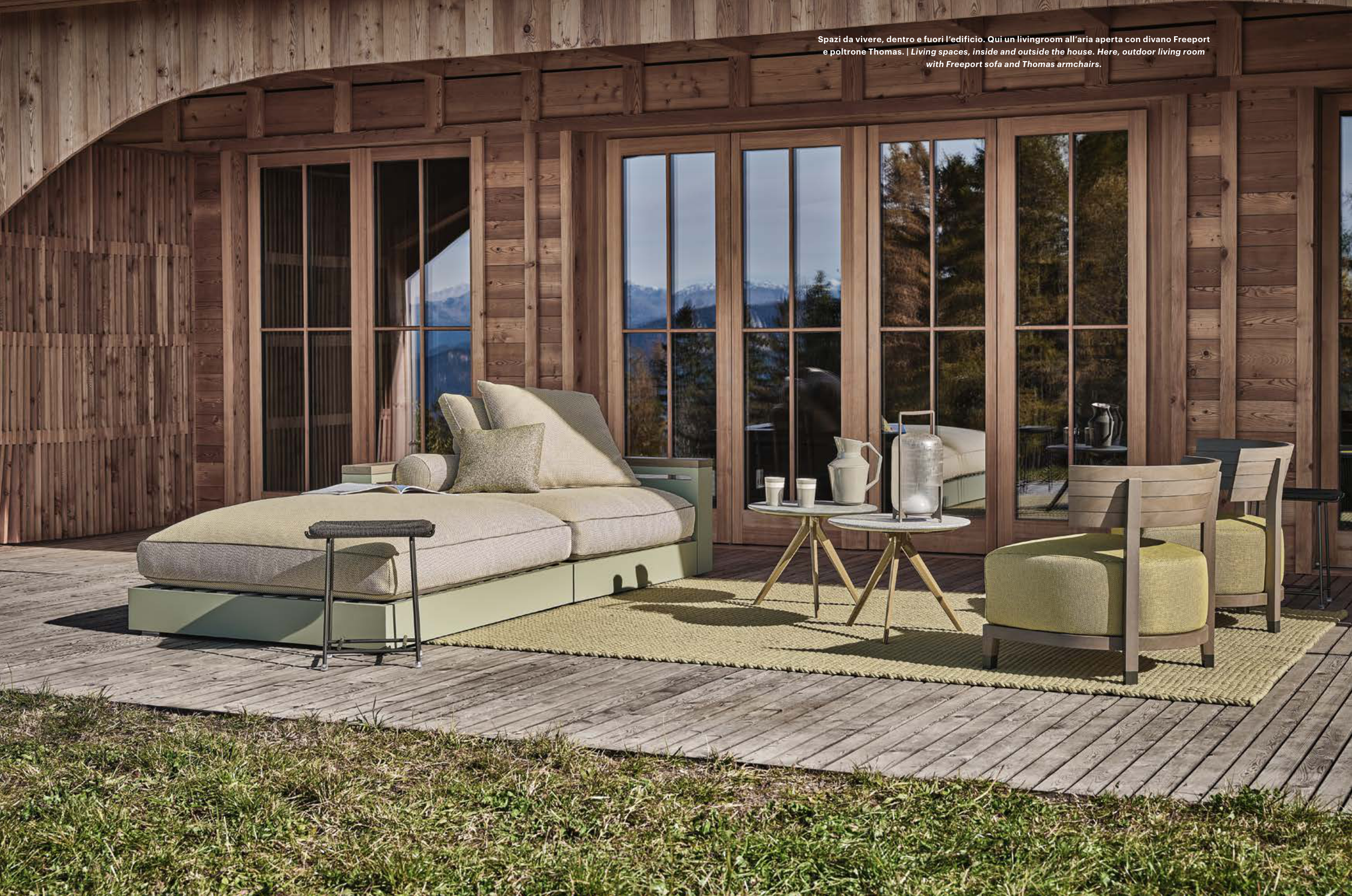 Spazi da vivere, dentro e fuori l’edificio. Qui un livingroom all’aria aperta con divano Freeport
