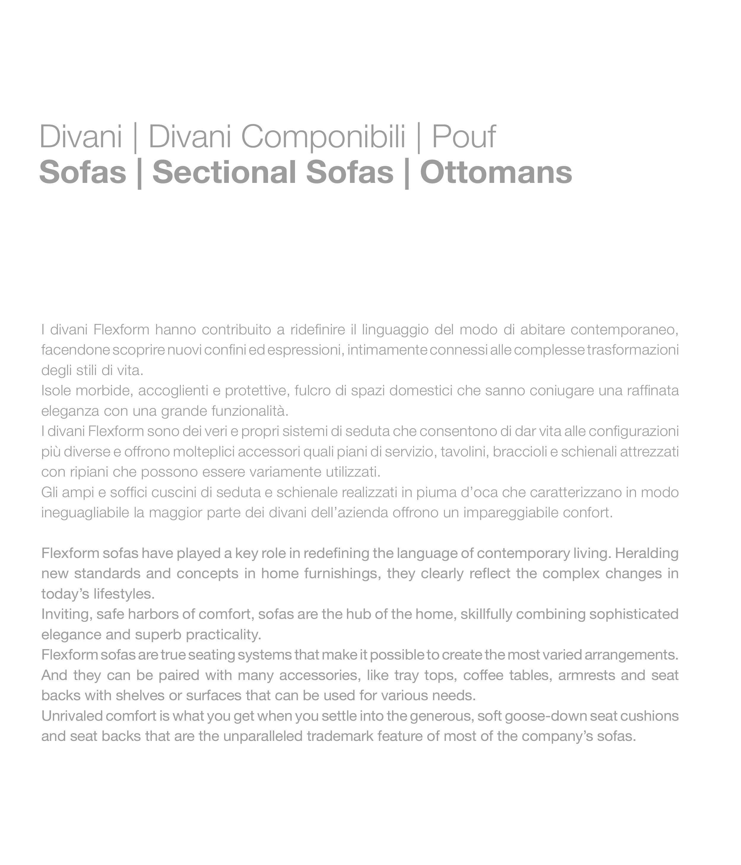 Flexform sofas have played a key role in redefining the language of contemporary living. Heralding