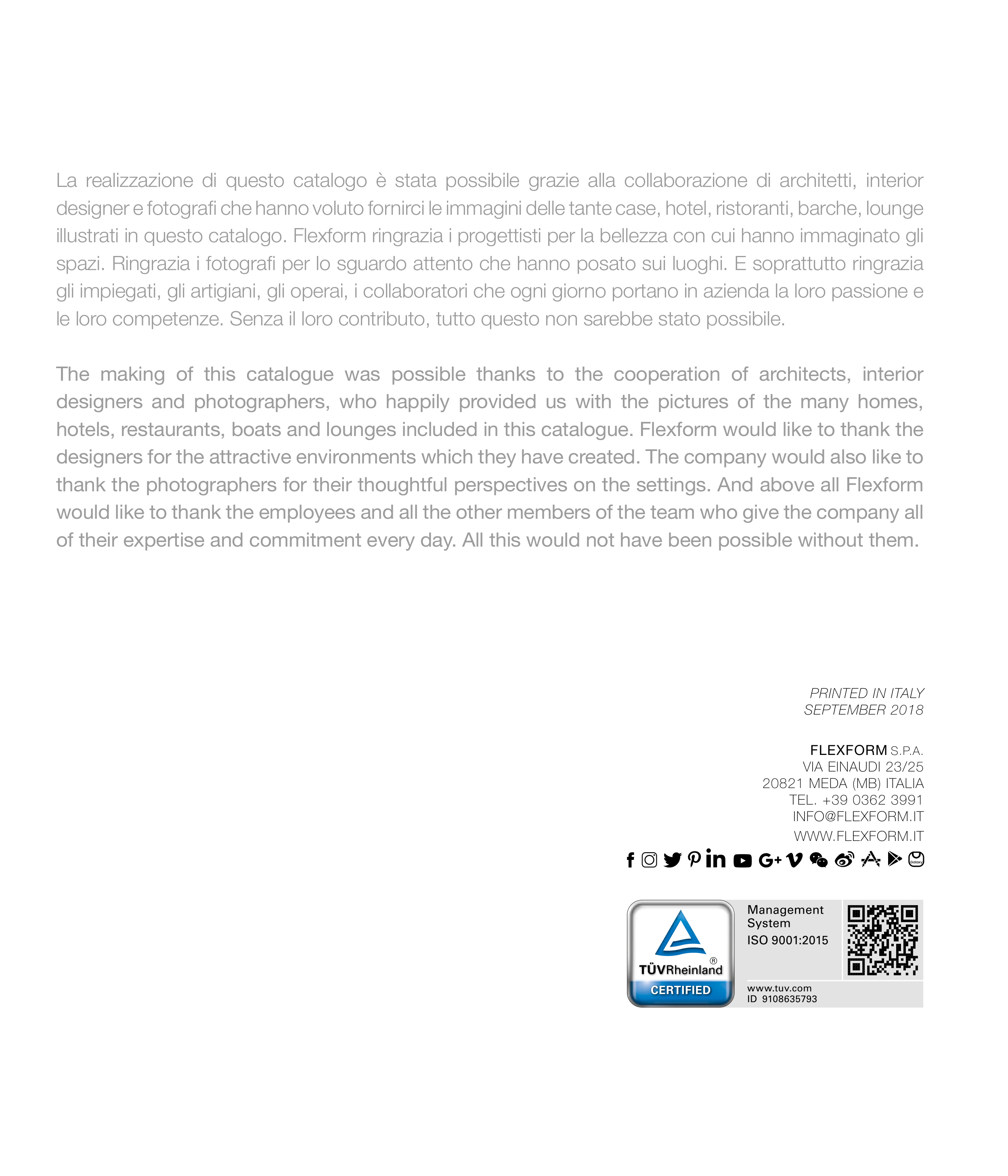 illustrati in questo catalogo. Flexform ringrazia i progettisti per la bellezza con cui hanno immaginato gli