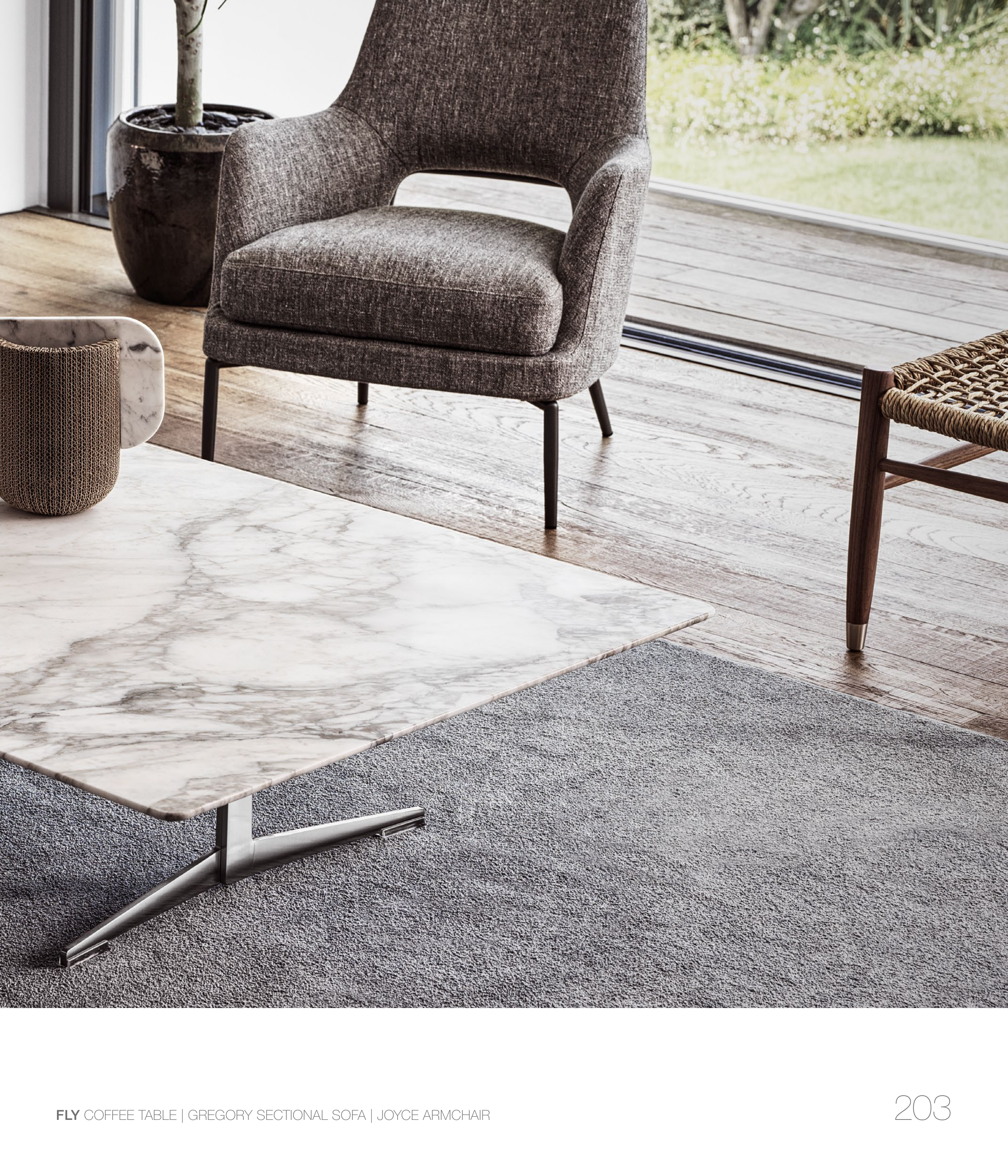 FLY COFFEE TABLE | GREGORY SECTIONAL SOFA | JOYCE ARMCHAIR