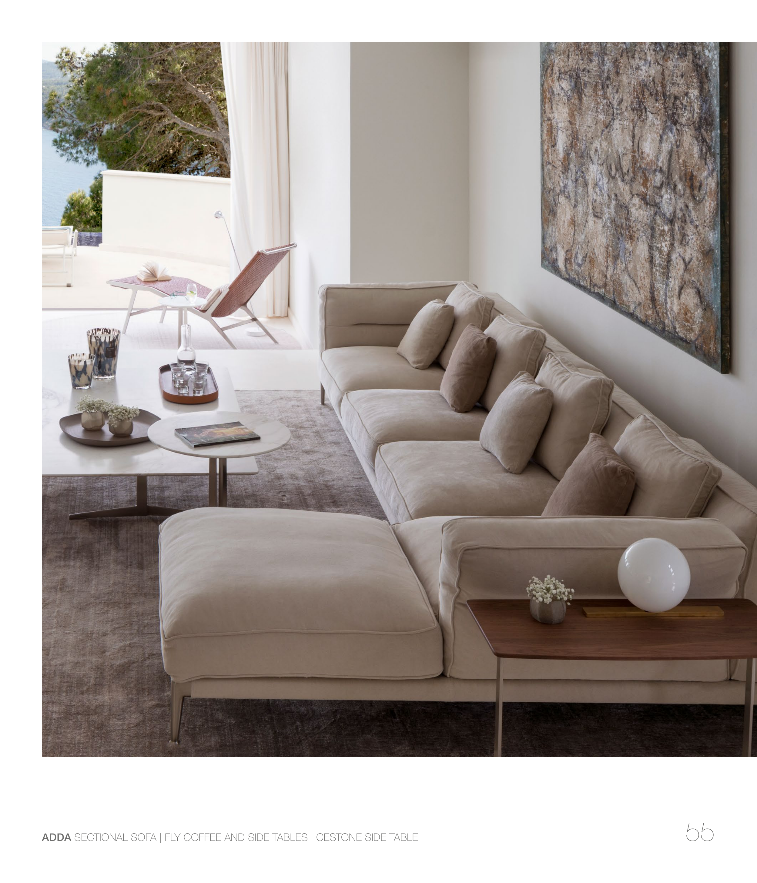 ADDA SECTIONAL SOFA | FLY COFFEE AND SIDE TABLES | CESTONE SIDE TABLE