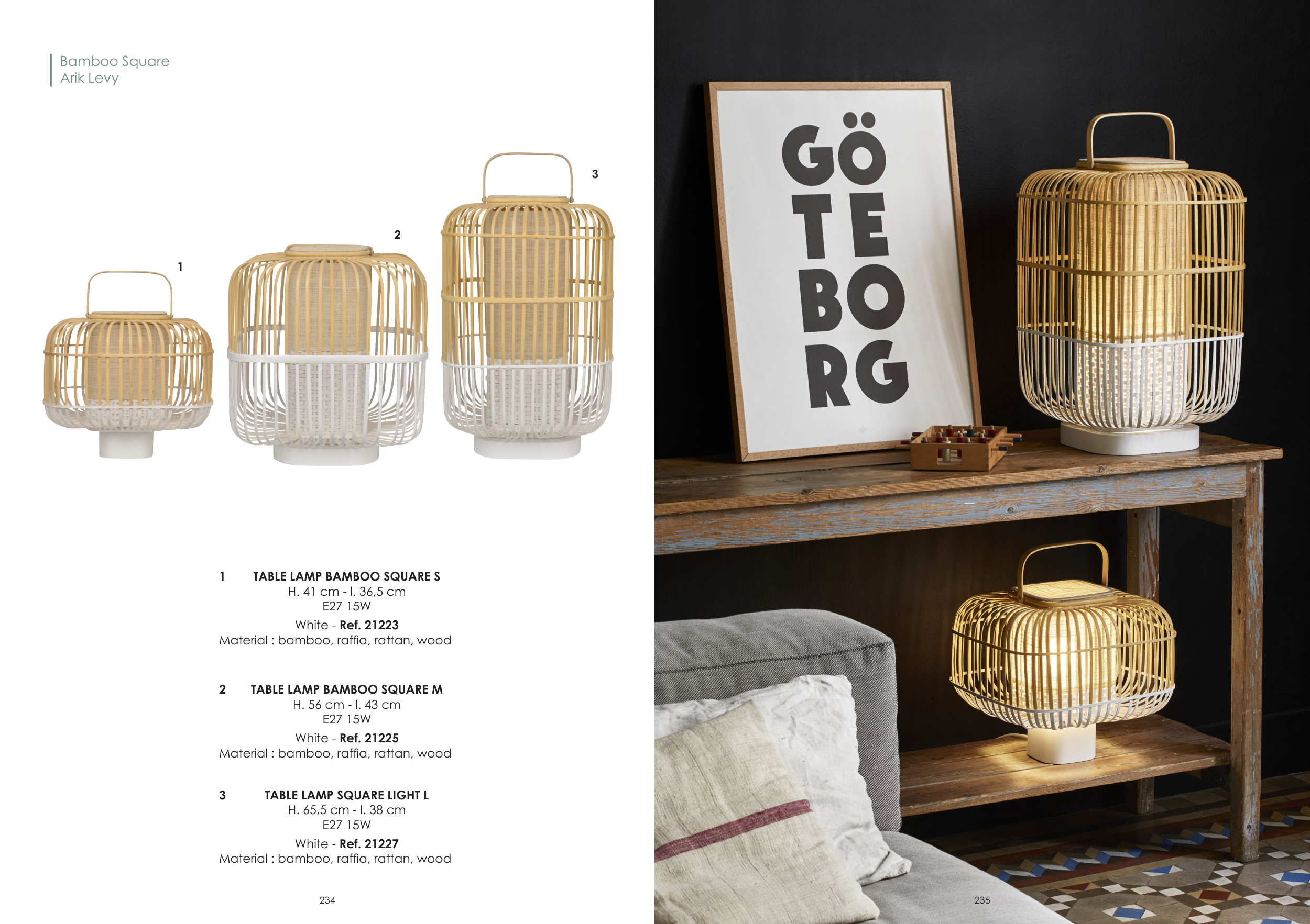 Material : bamboo, raffia, rattan, wood