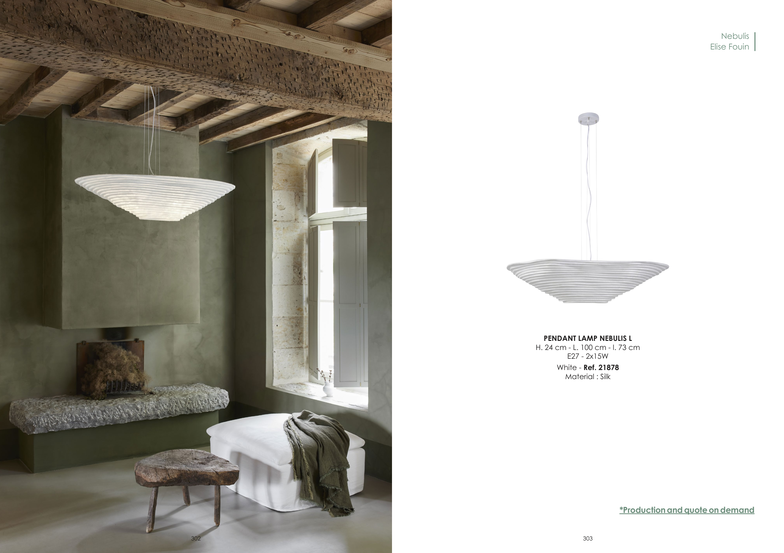 PENDANT LAMP NEBULIS L H. 24 cm - L. 100 cm - l. 73 cm E27 - 2x15W White - Ref. 21878 Material : Silk Nebulis Elise Fouin *Production and quote on demand 302 303