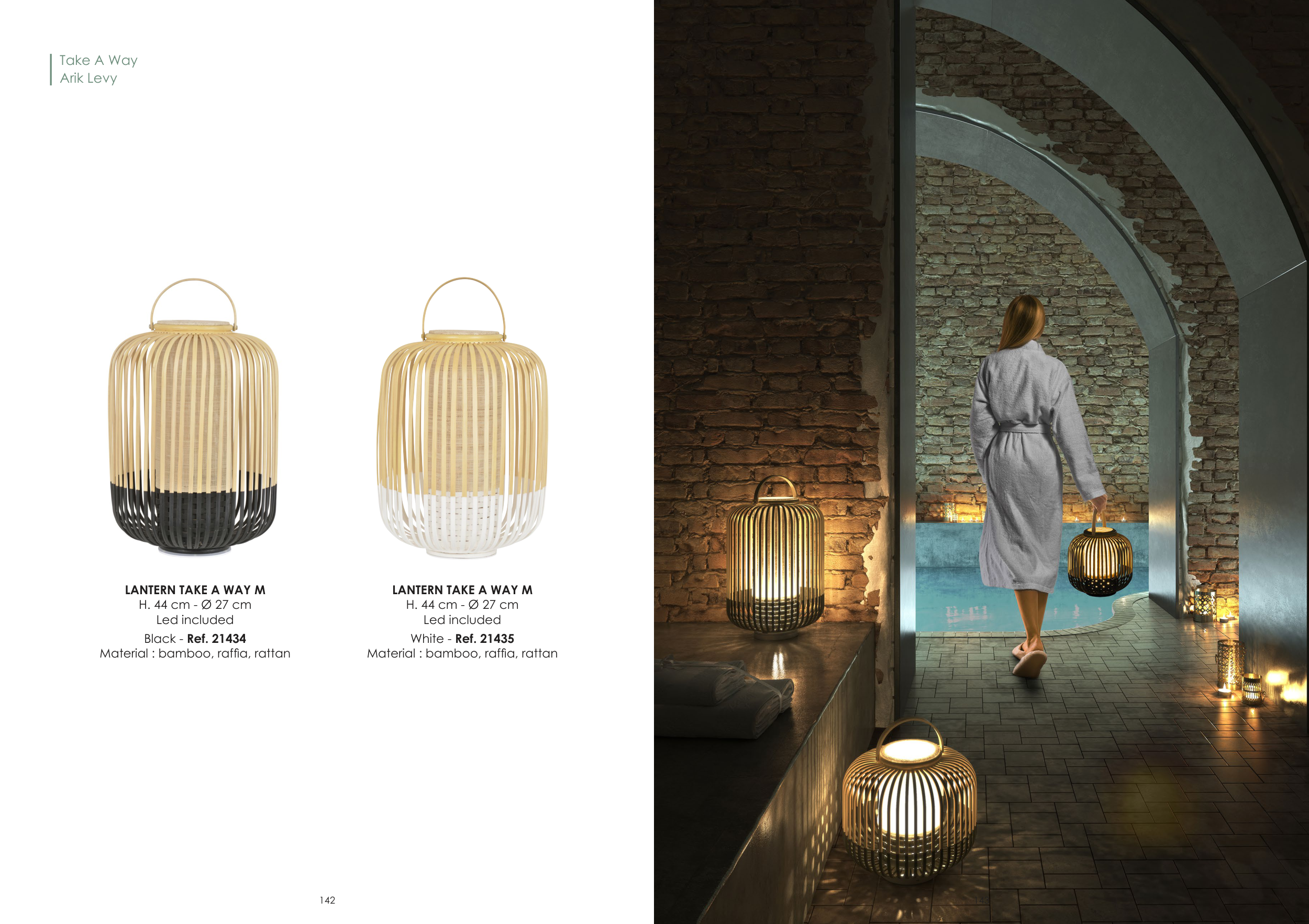 Take A Way Arik Levy LANTERN TAKE A WAY M H. 44 cm - Ø 27 cm Led included Black - Ref. 21434 Material : bamboo, raffia, rattan LANTERN TAKE A WAY M H. 44 cm - Ø 27 cm Led included White - Ref. 21435 Material : bamboo, raffia, rattan 142 143