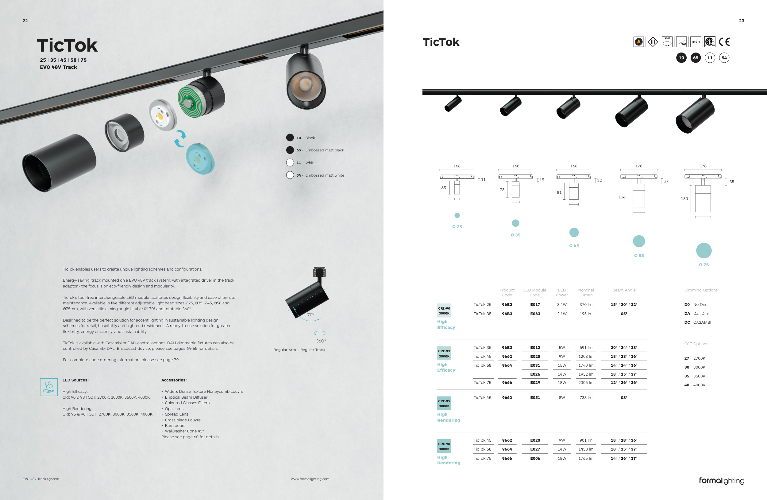 CRI: 95 & 98 | CCT: 2700K, 3000K, 3500K, 4000K.