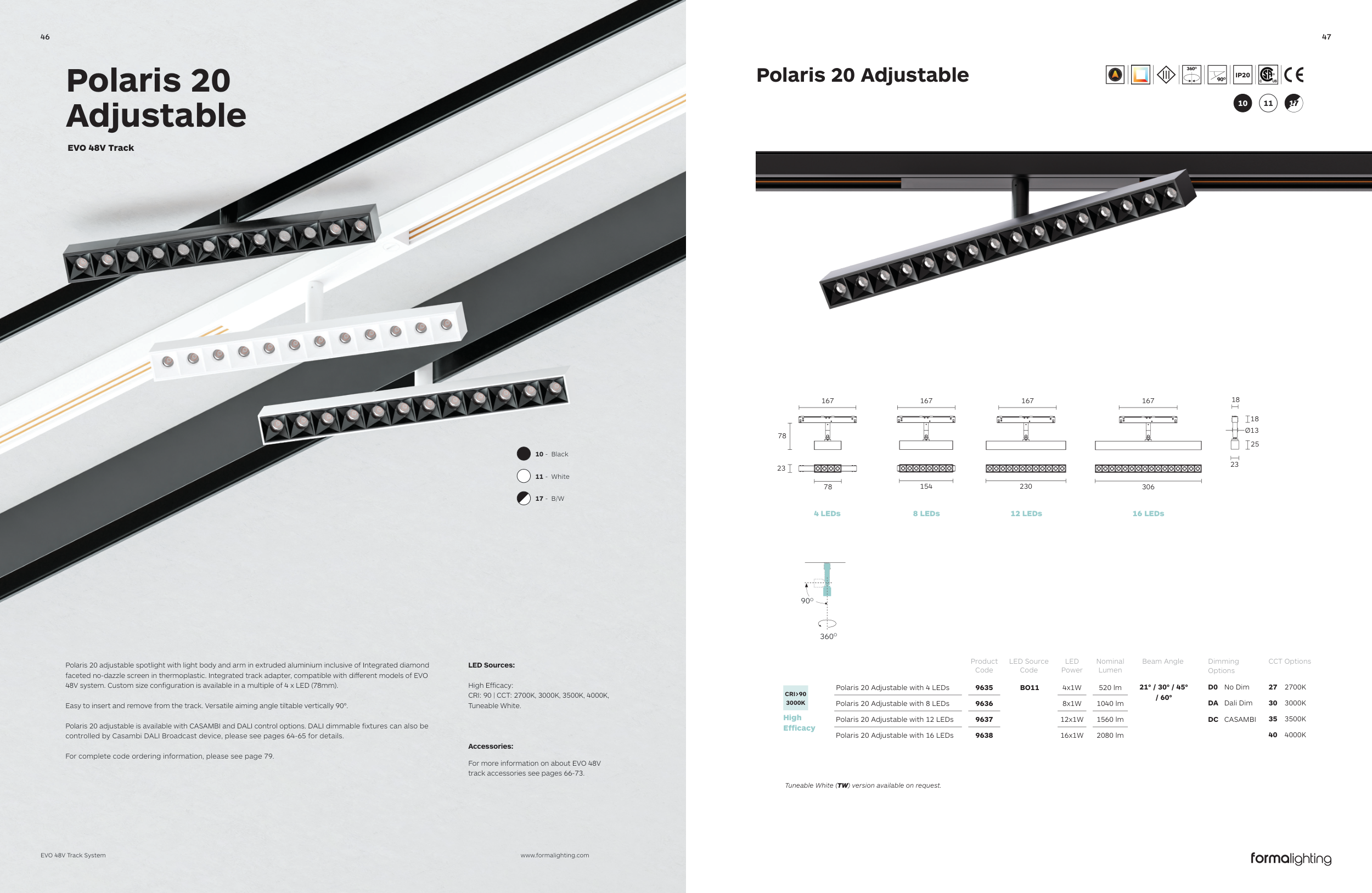 CRI: 90 | CCT: 2700K, 3000K, 3500K, 4000K,