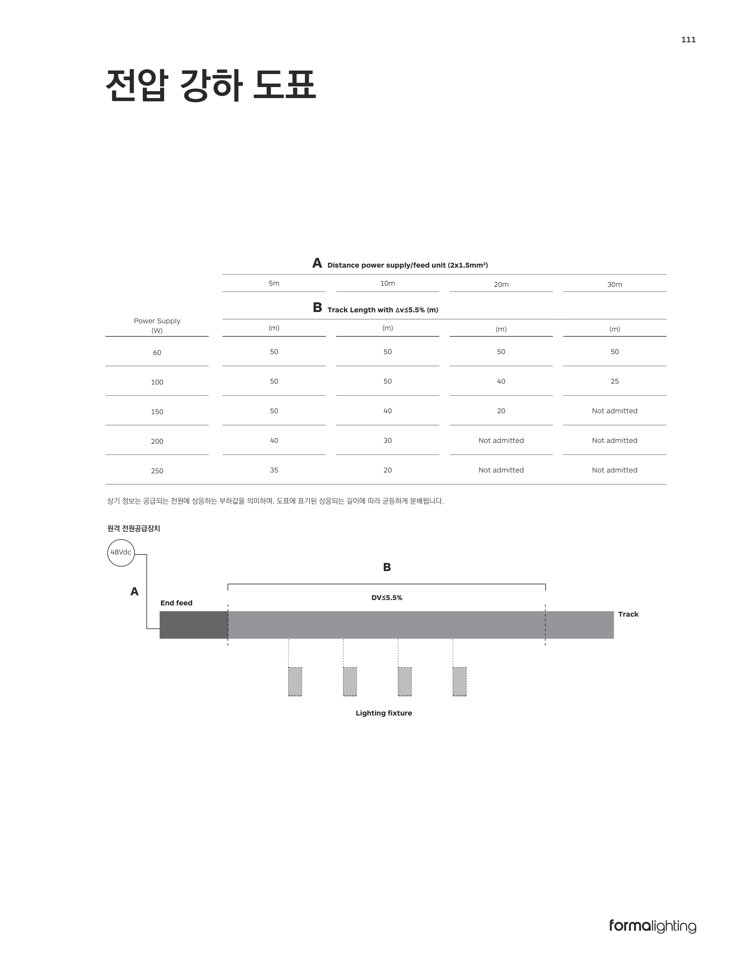 상기 정보는 공급되는 전원에 상응하는 부하값을 의미하며, 도표에 표기된 상응되는 길이에 따라 균등하게 분배됩니다.