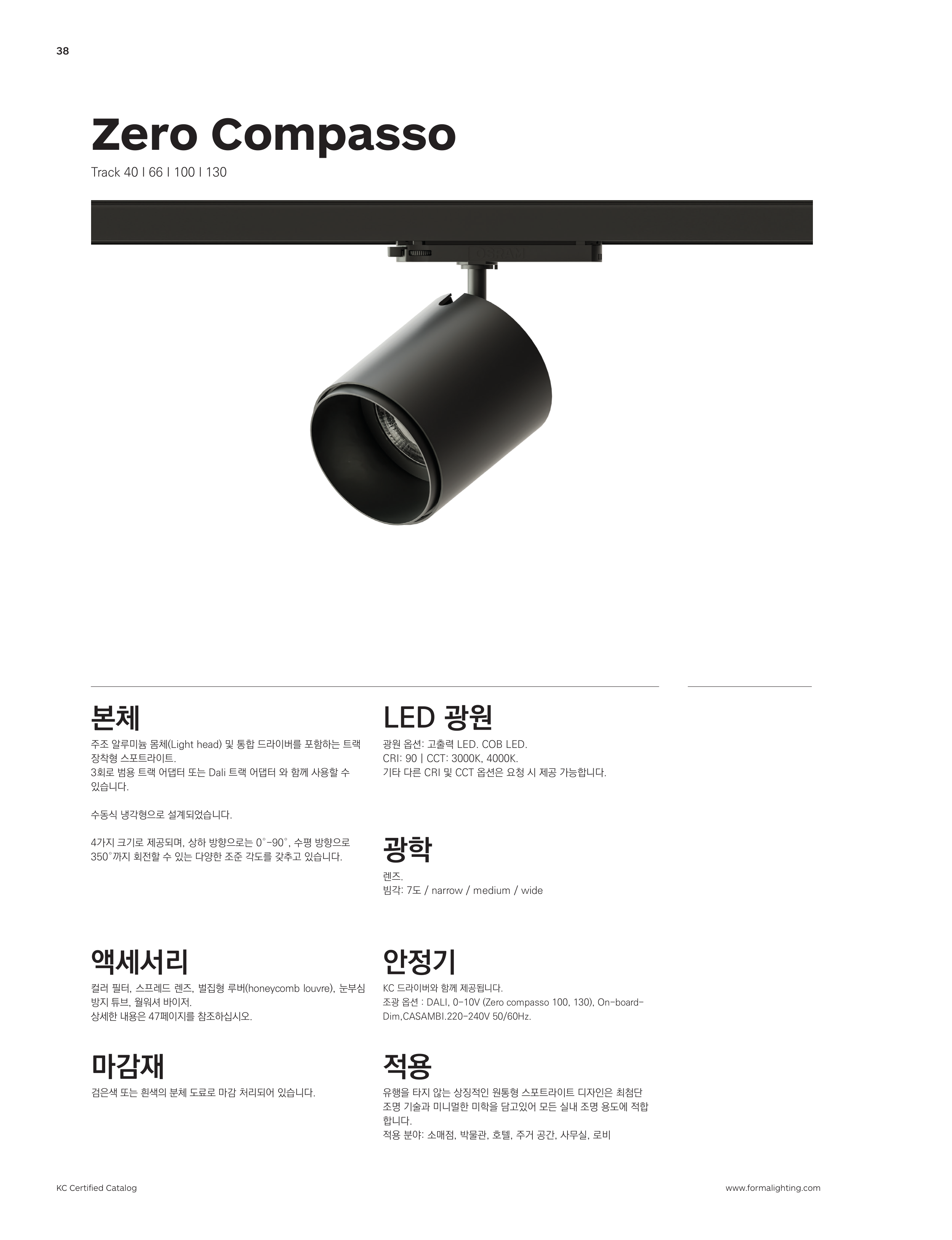 조광 옵션 : DALI, 0-10V (Zero compasso 100, 130), On-board-