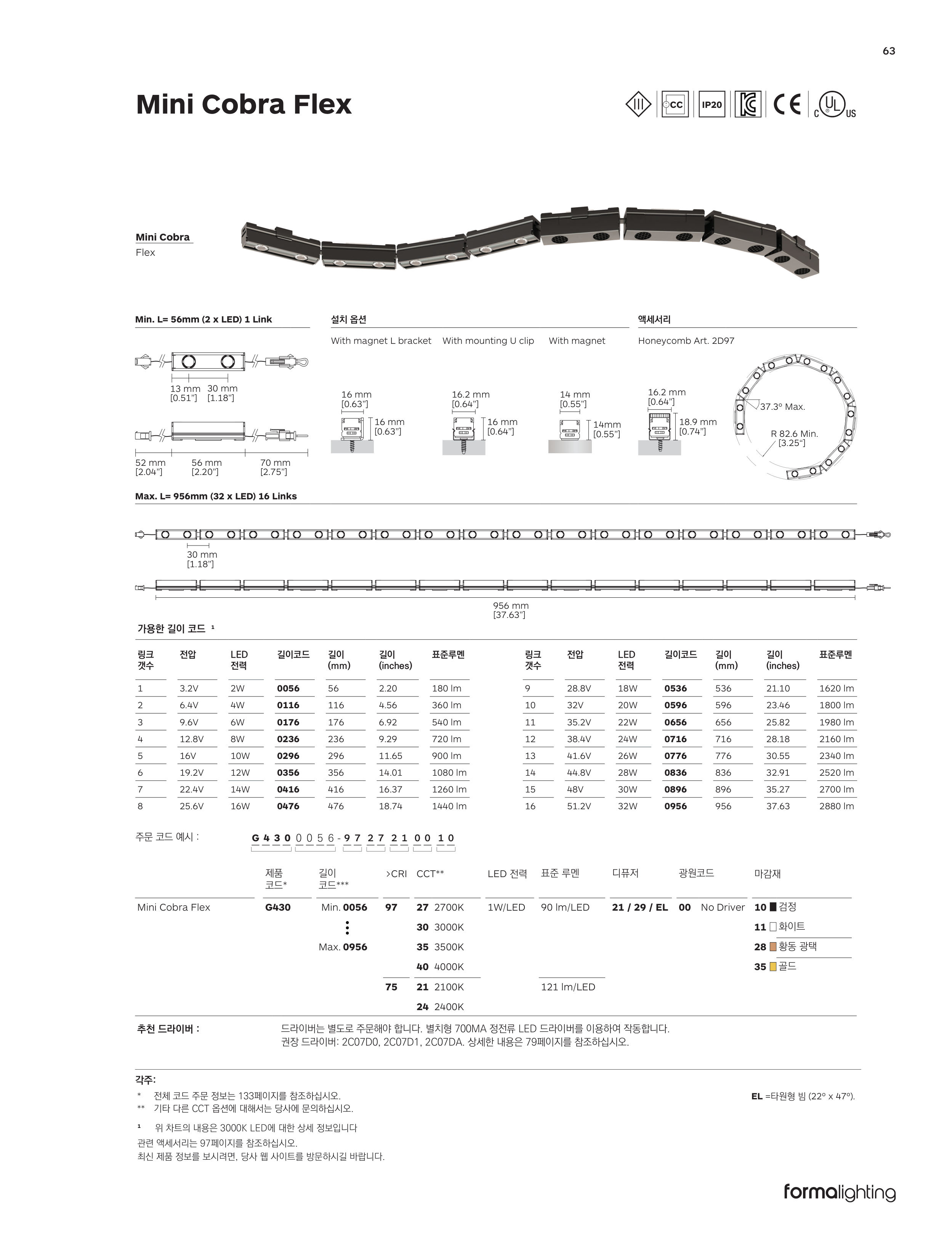 Max. L= 956mm (32 x LED) 16 Links