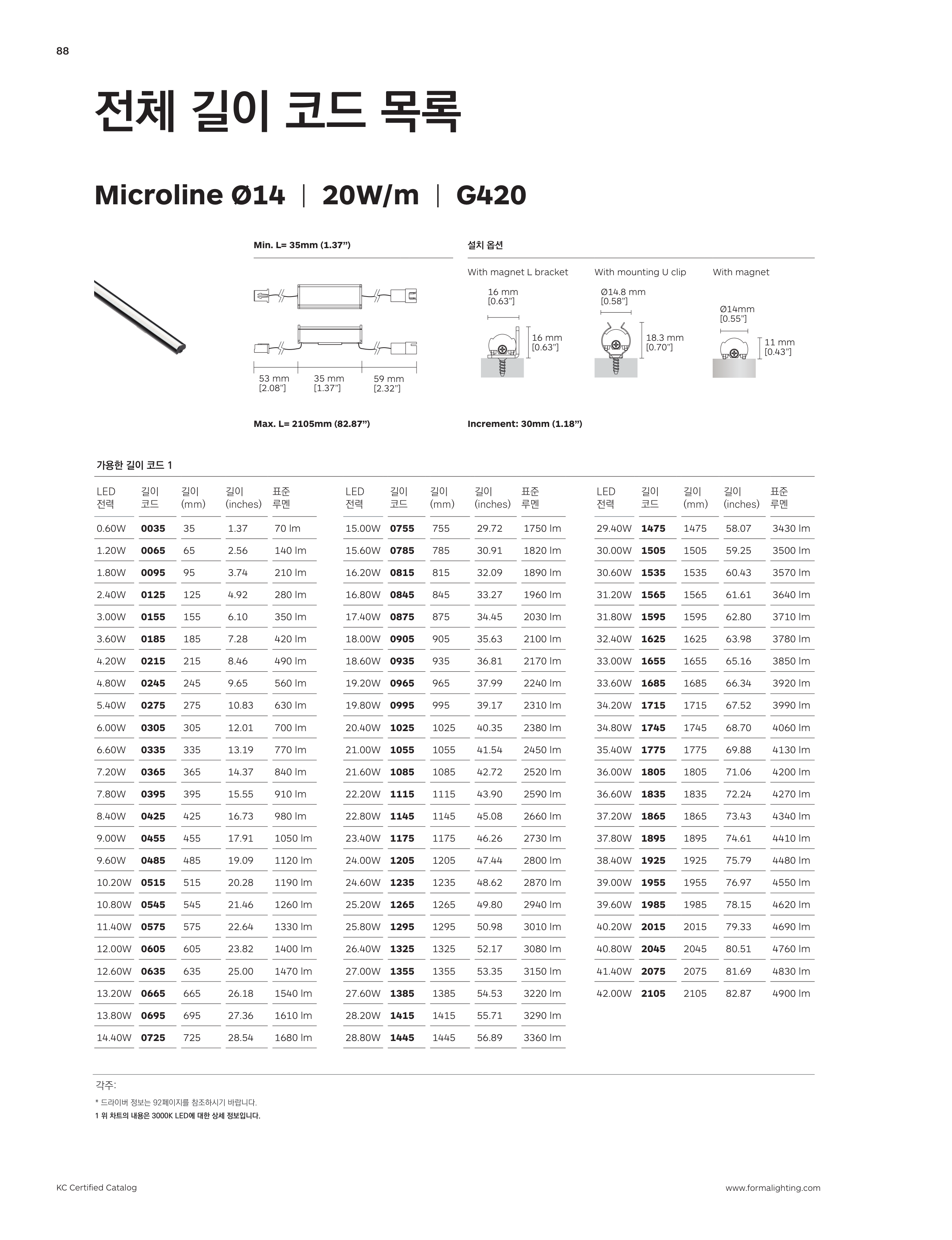 전체 길이 코드 목록