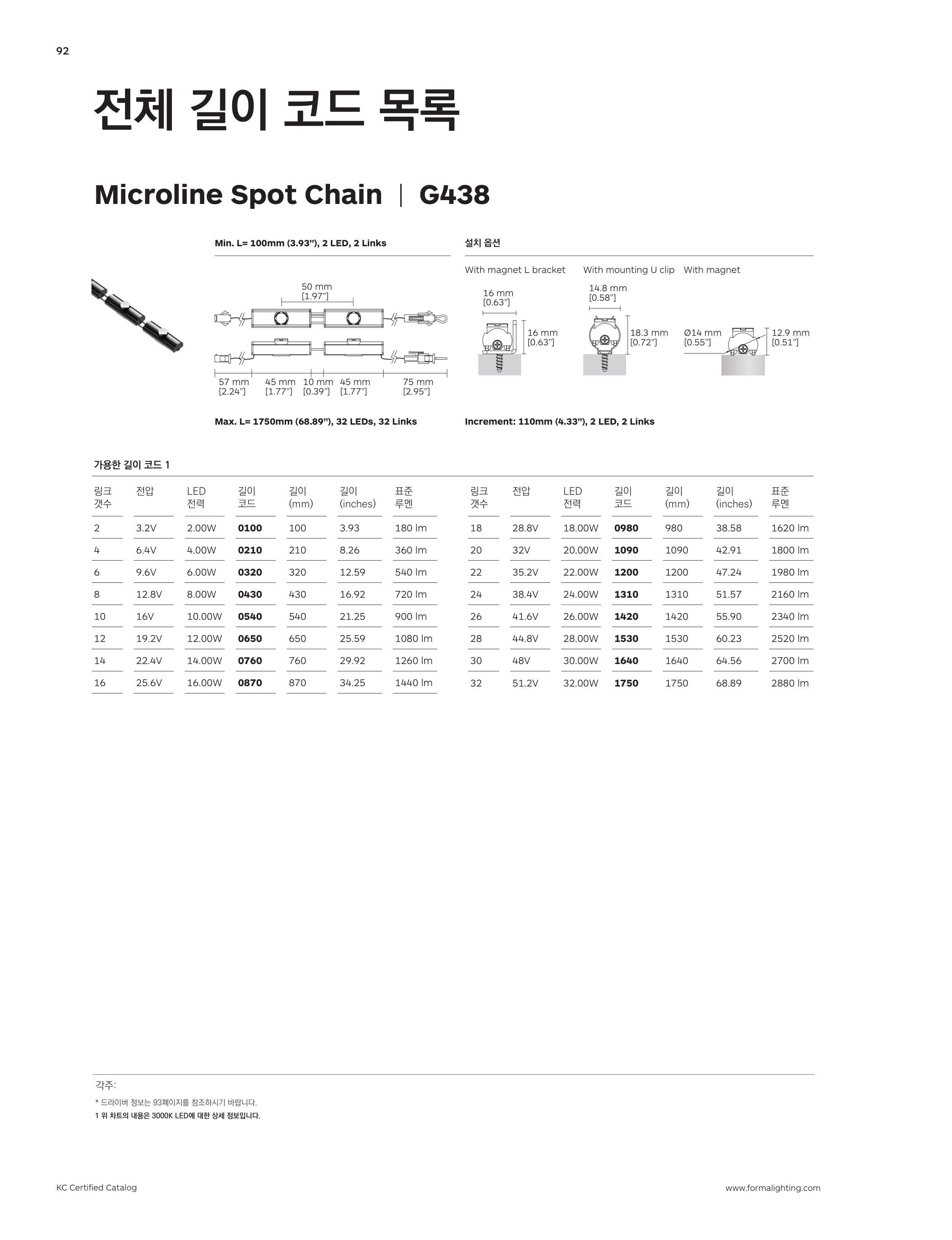 Increment: 110mm (4.33”), 2 LED, 2 Links