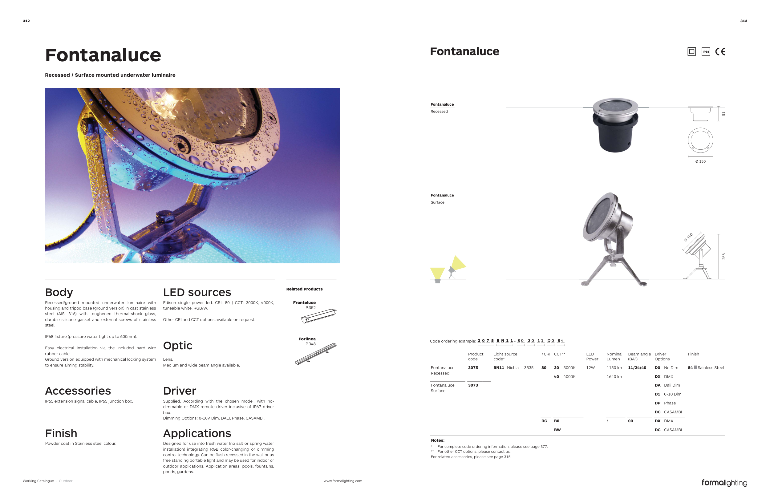 IP68 fixture (pressure water tight up to 600mm).