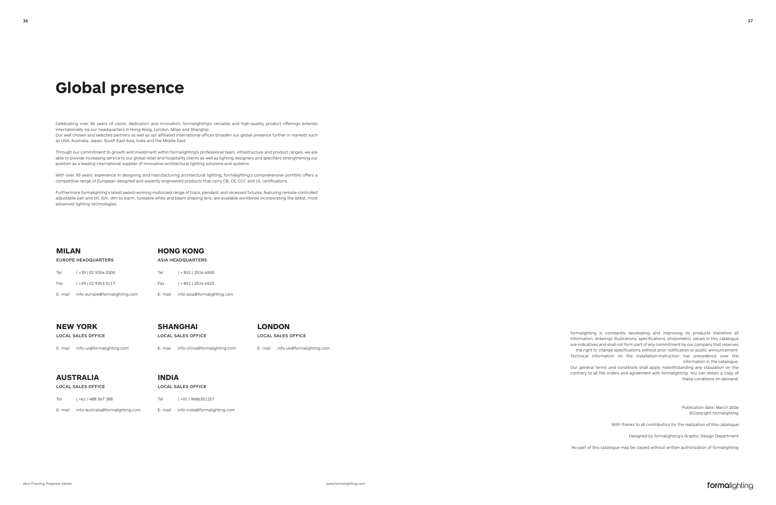 No part of this catalogue may be copied without written authorization of formalighting