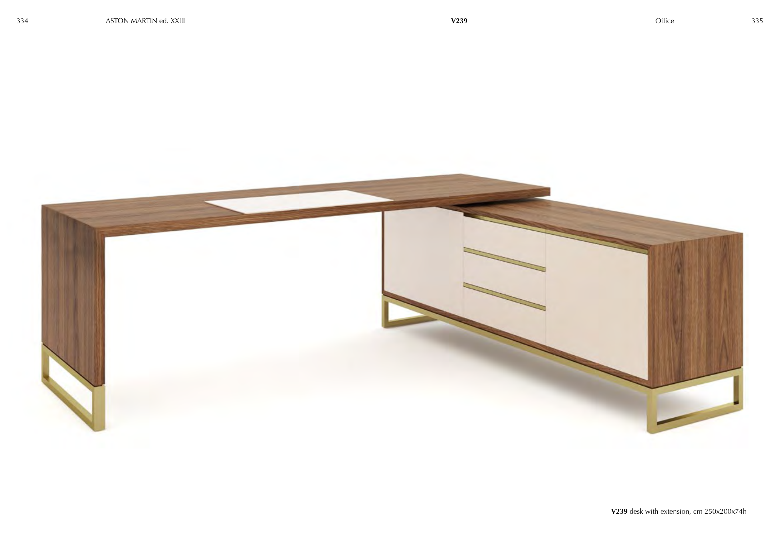 V239 desk with extension, cm 250x200x74h