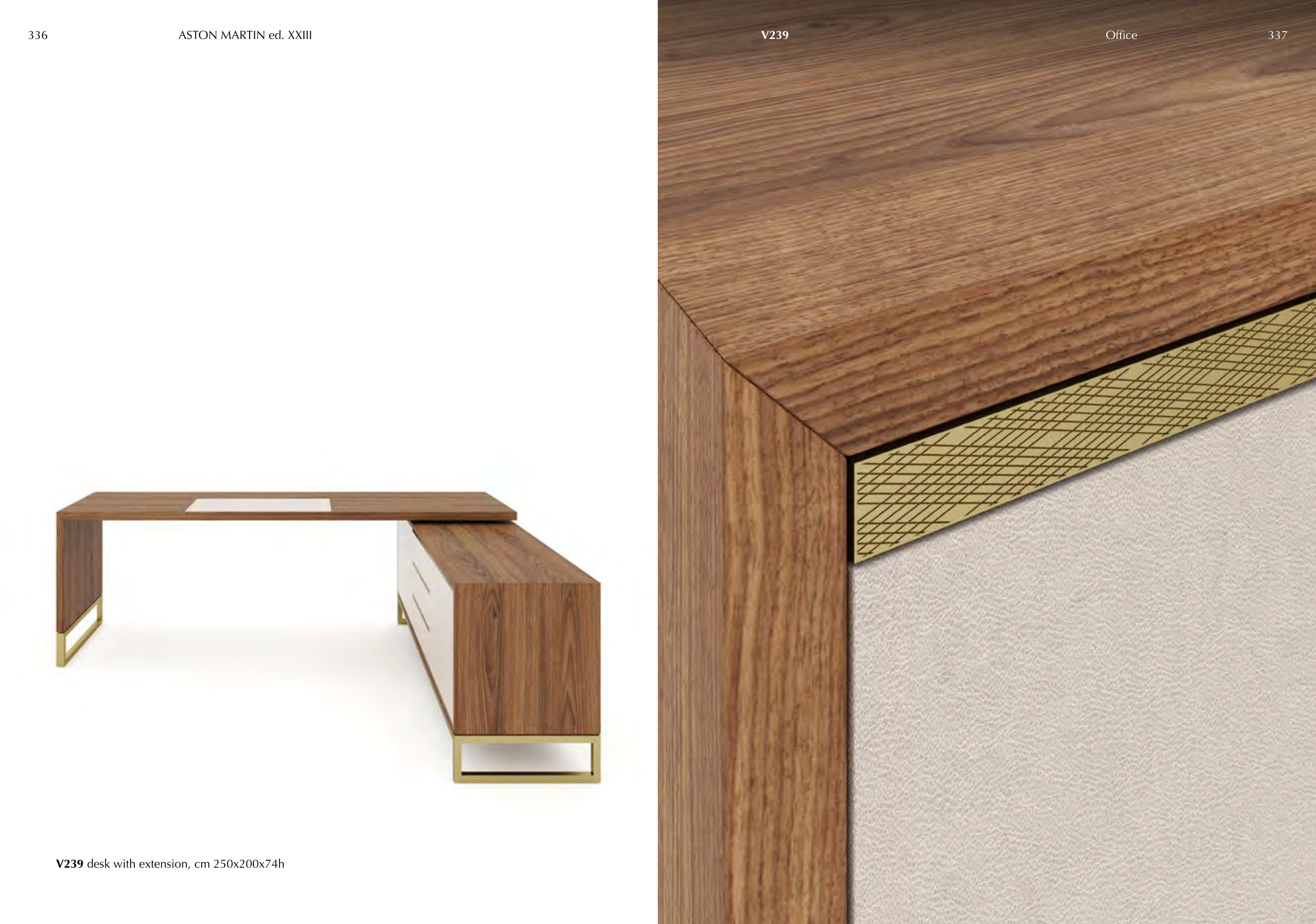 V239 desk with extension, cm 250x200x74h