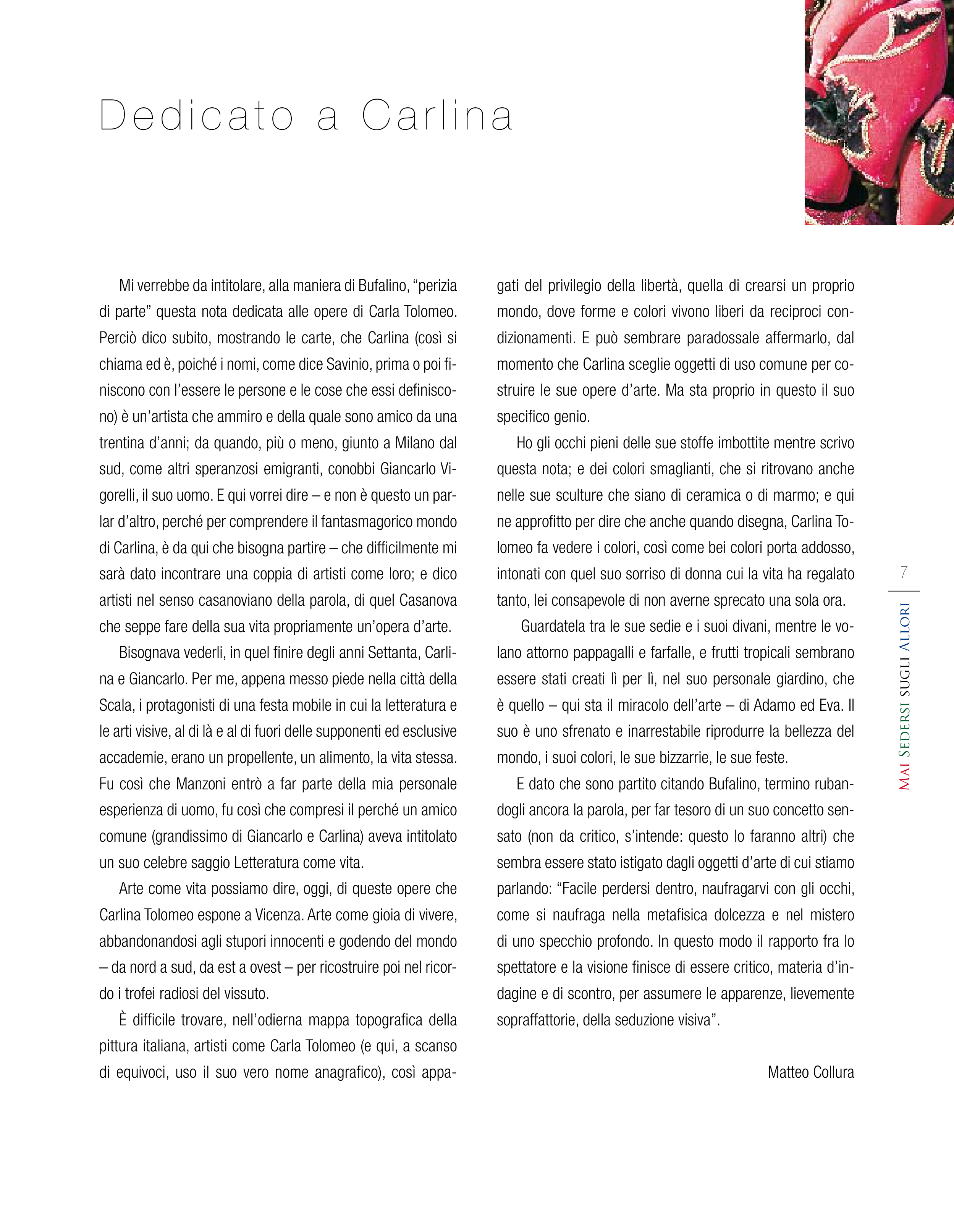 Каталог Formitalia: Carla Tolomeo Mai Sedersi Sugi Allori 2009, стр 9 с 92