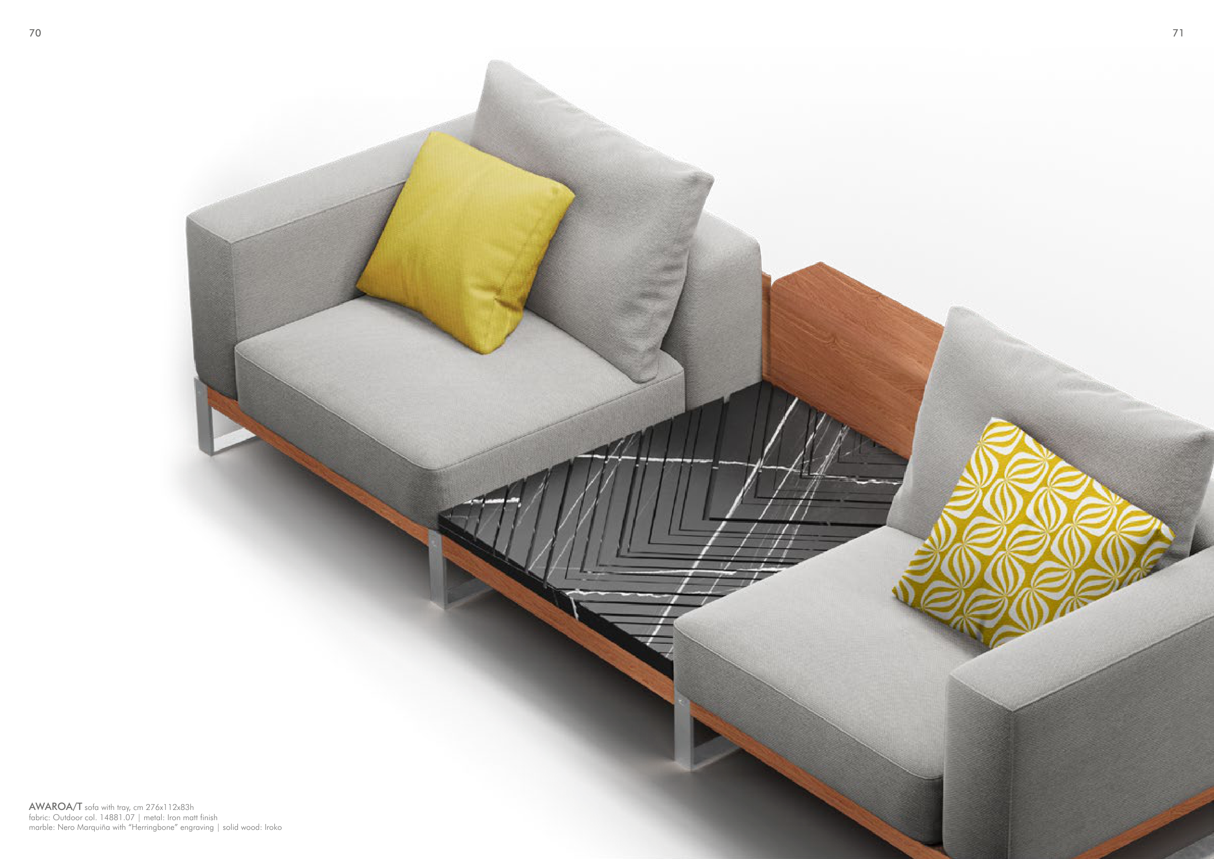 AWAROA/T sofa with tray, cm 276x112x83h