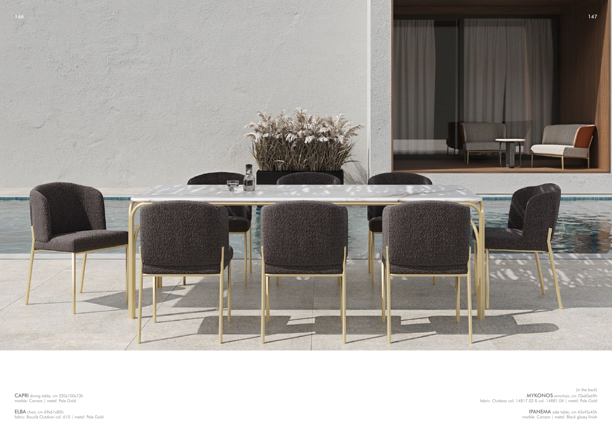 fabric: Outdoor col. 14817.02 & col. 14881.04 | metal: Pale Gold